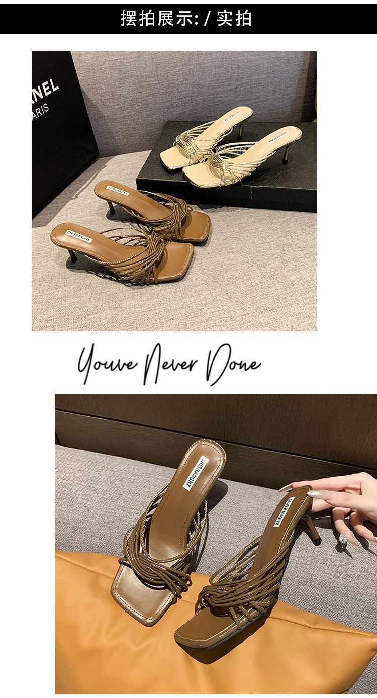 여성을위한 프렌치 스퀘어 토 크로스 스트랩 하이힐 샌들 2025 새로운 대형 스타일 스틸레토 힐 오픈 토우 로마 샌들