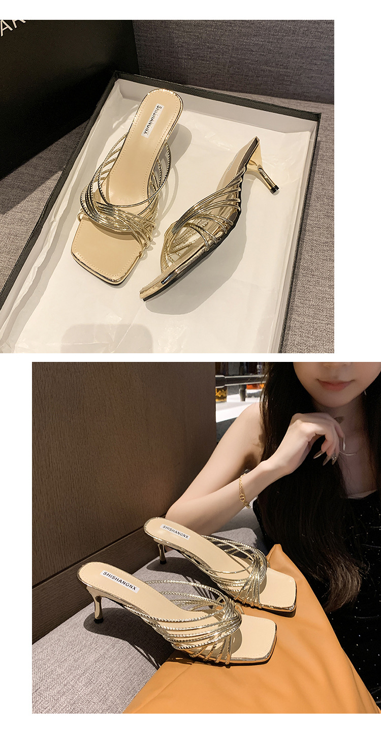 여성을위한 프렌치 스퀘어 토 크로스 스트랩 하이힐 샌들 2025 새로운 대형 스타일 스틸레토 힐 오픈 토우 로마 샌들스토어 가기