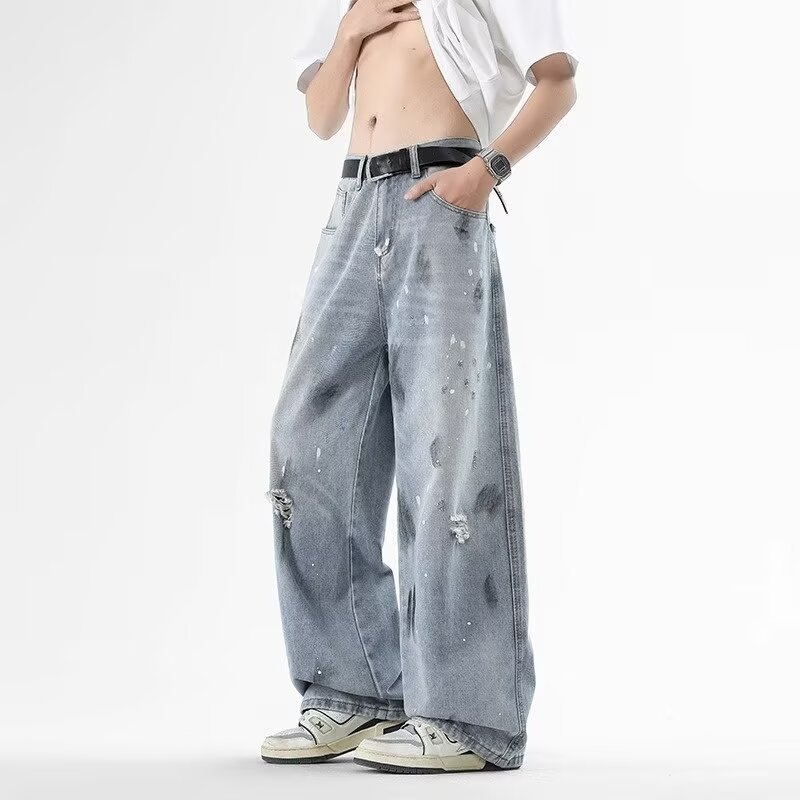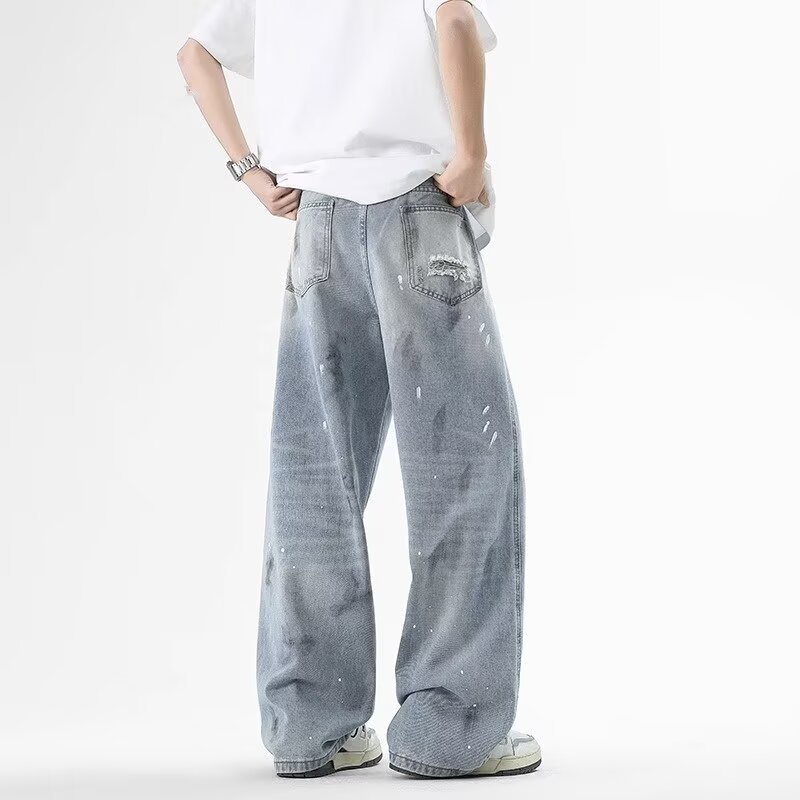 워싱 더티 염색 스플래시 잉크 청바지 남성 트렌디 아메리칸 하이 스트리트 바이브 팬츠 루즈 스트레이트 세이버 캐주얼 팬츠