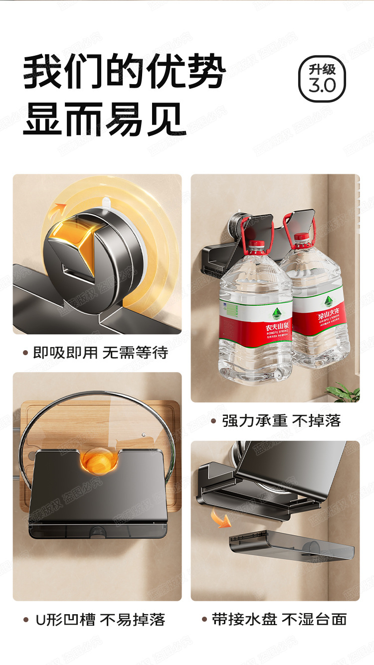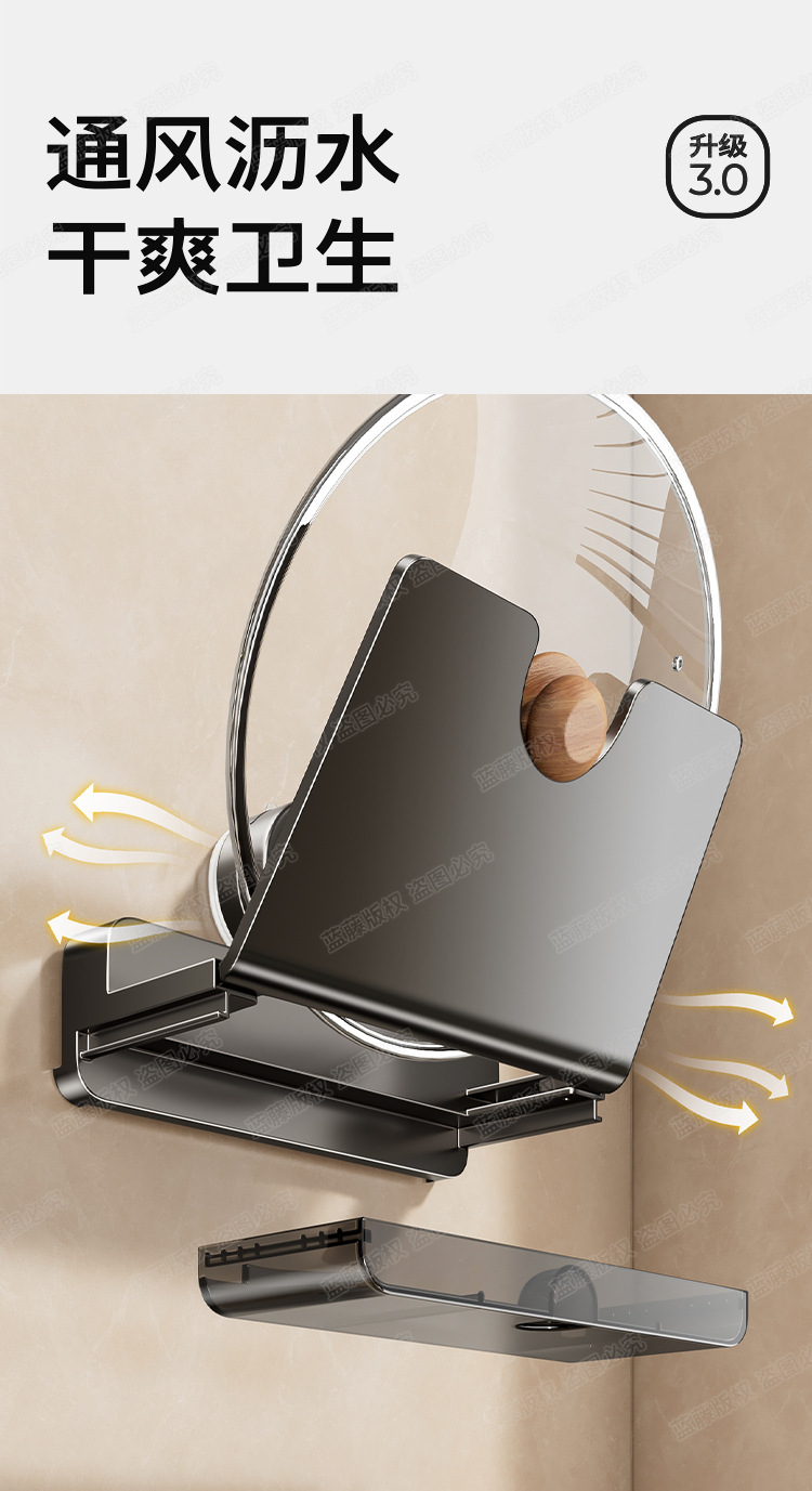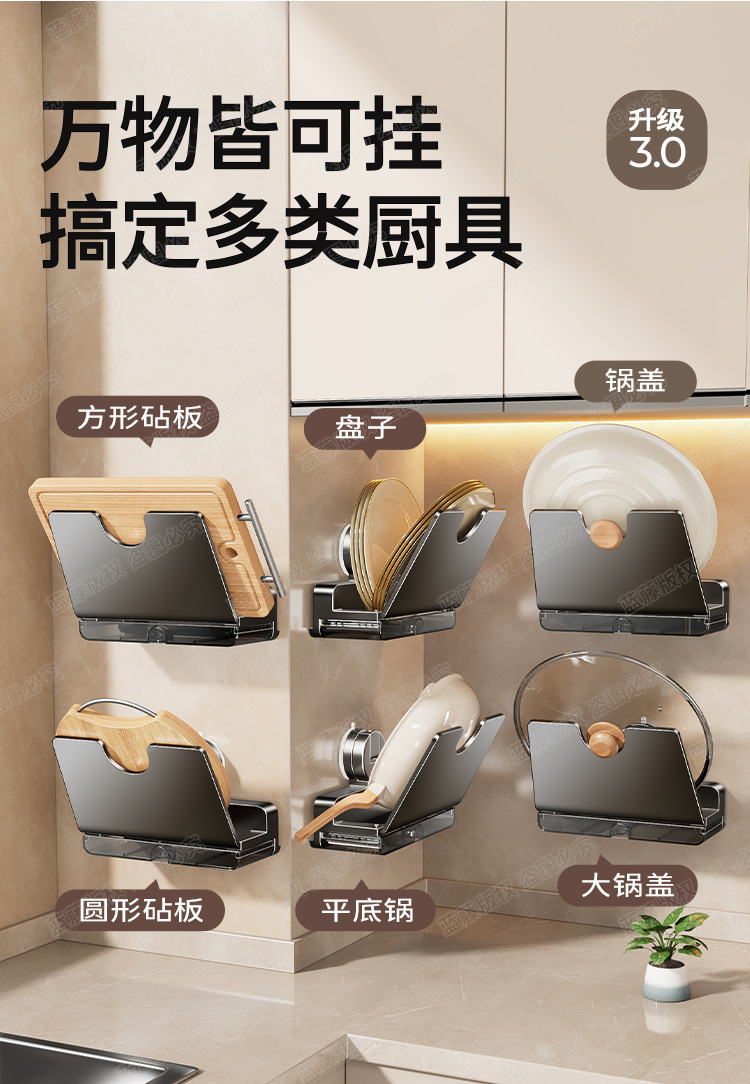 구멍이 없는 빨판 냄비뚜껑걸이, 주방수납선반, 벽걸이형 도마수납, 도마걸이, 수납용품