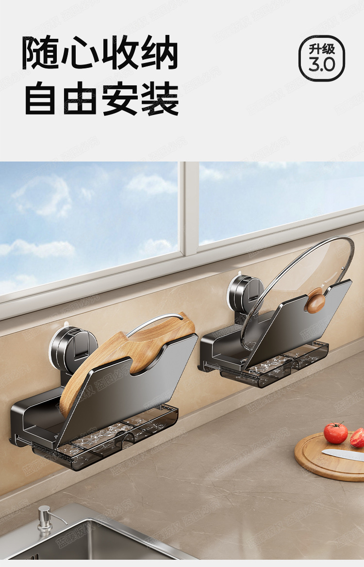 구멍이 없는 빨판 냄비뚜껑걸이, 주방수납선반, 벽걸이형 도마수납, 도마걸이, 수납용품스토어 가기