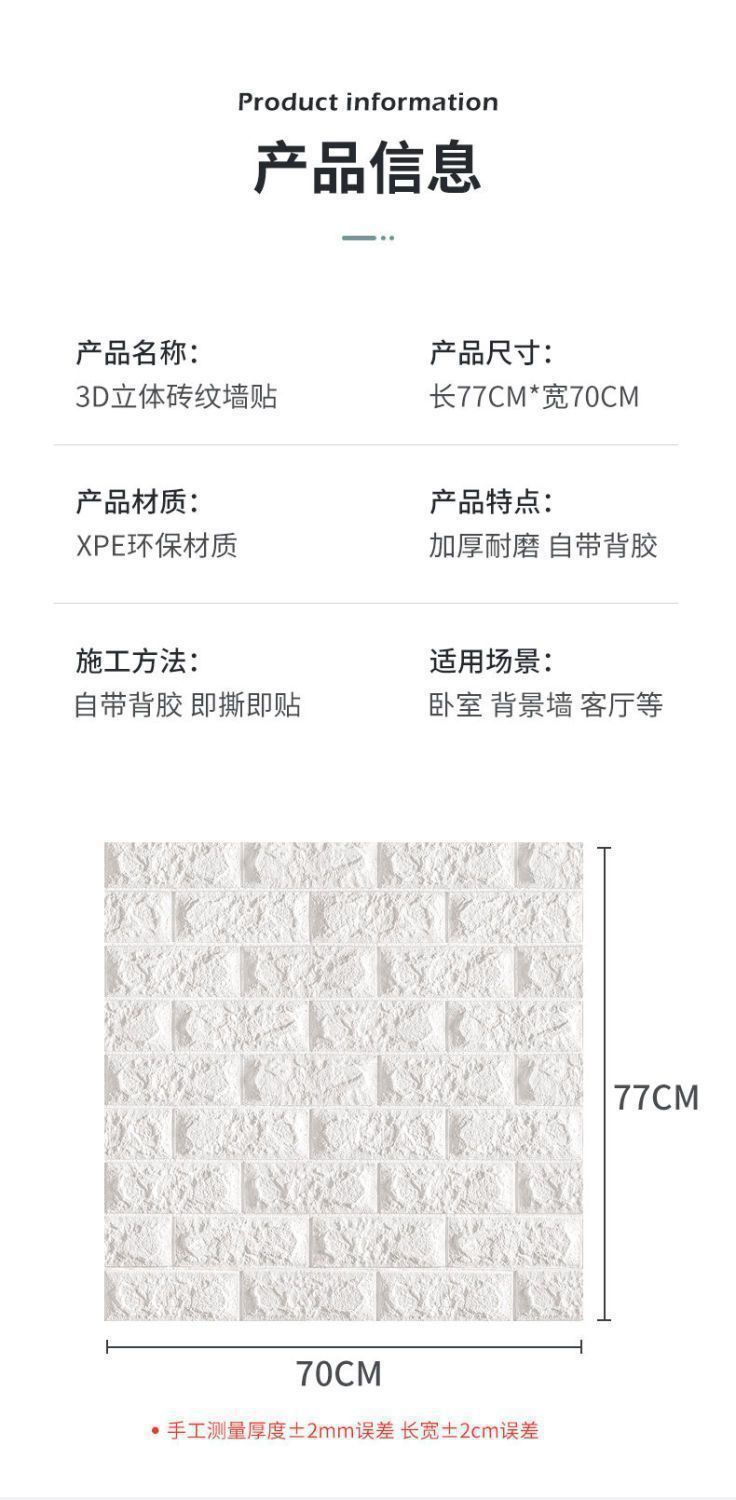 벽지 자체 접착 방수 및 방습 3D 입체 벽 스티커 거실 배경 벽 벽지 거품 벽돌 따뜻한 장식 스티커스토어 가기