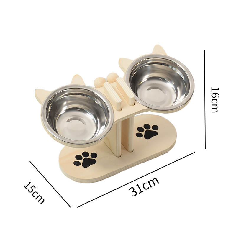스팟 목재 애완동물 그릇 랙 수직 분리형 애완동물 먹이 그릇 고양이 그릇 랙 피더 목 보호 애완동물 식탁