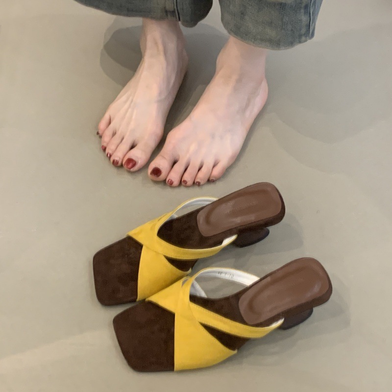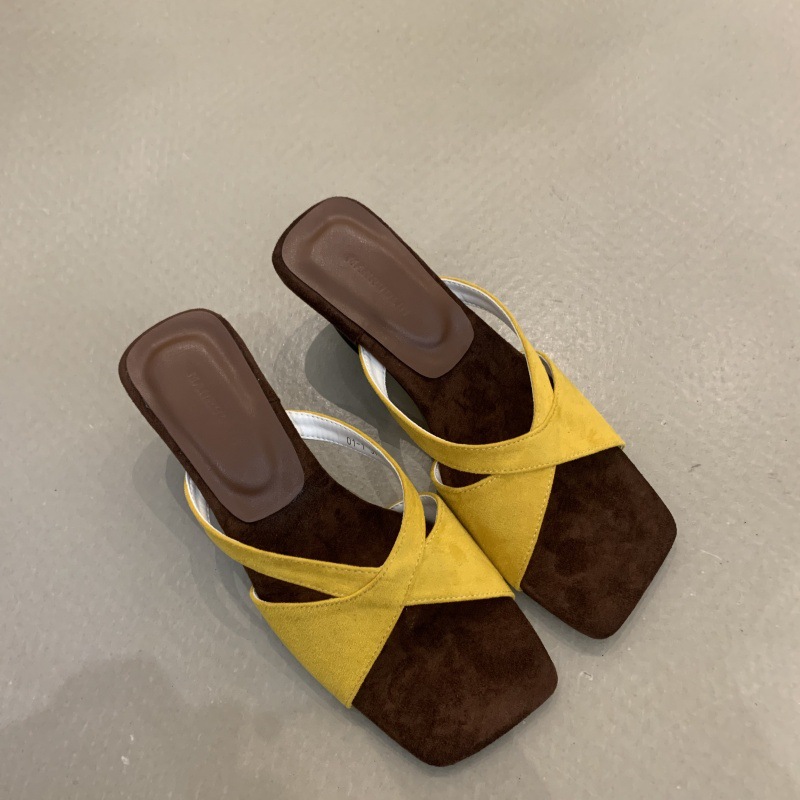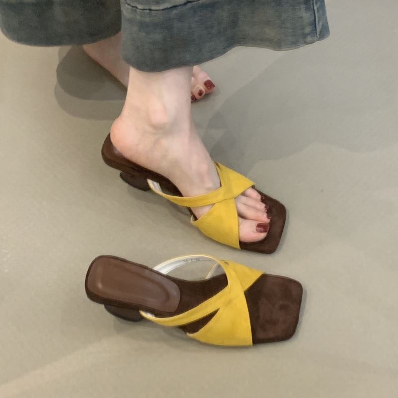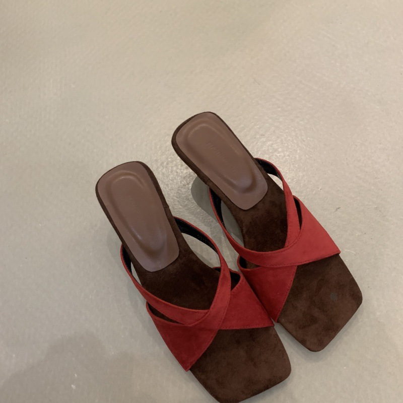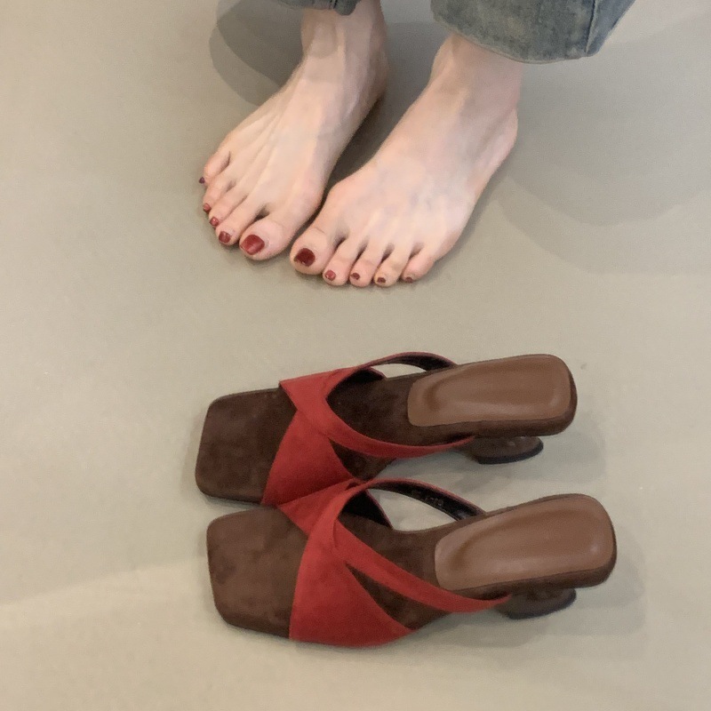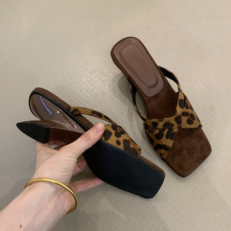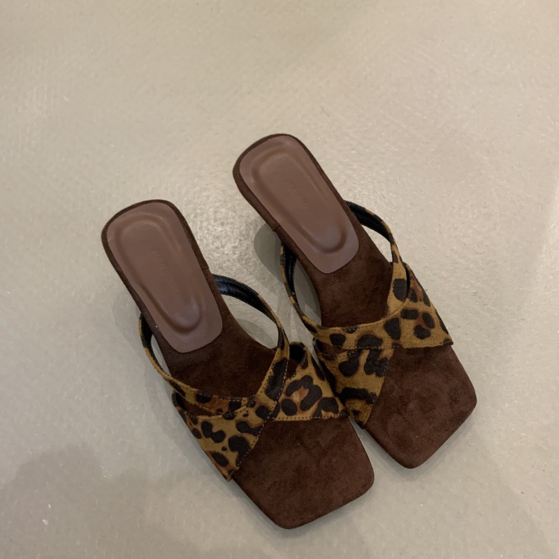 여성을위한 디자인 틈새 샌들 2025 여름 프랑스 복고풍 레오파드 프린트 크로스 웨지 하이힐 슬리퍼스토어 가기