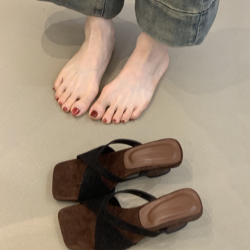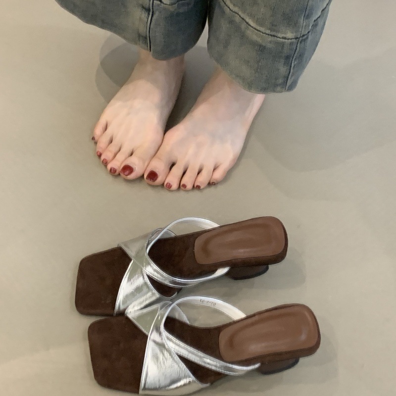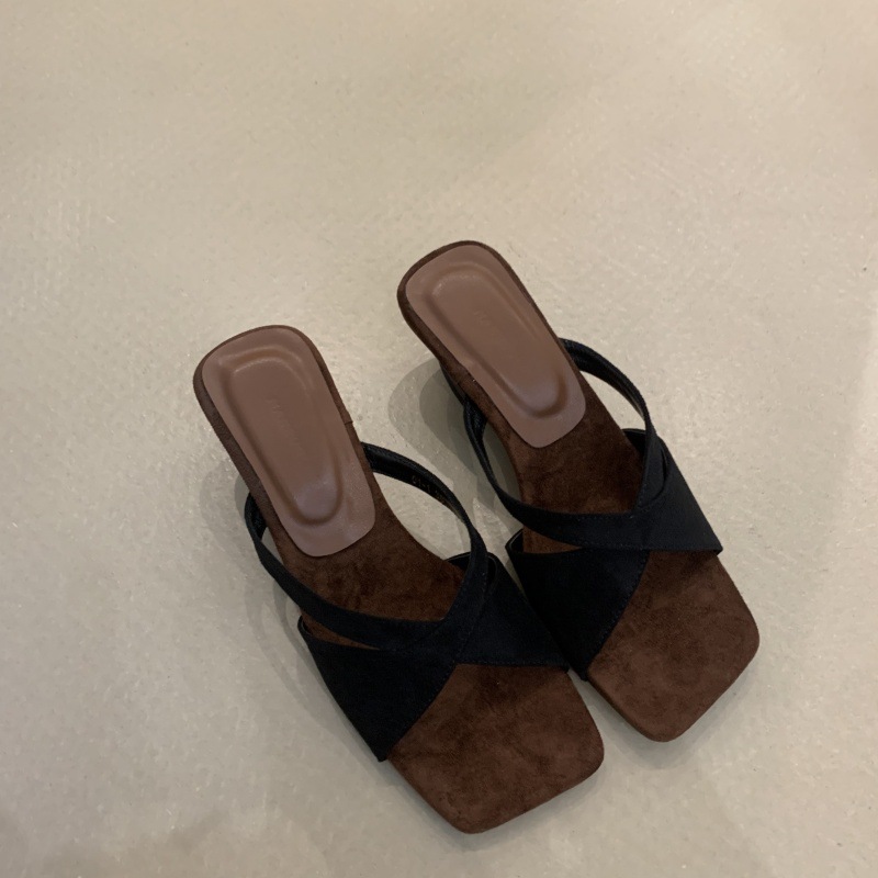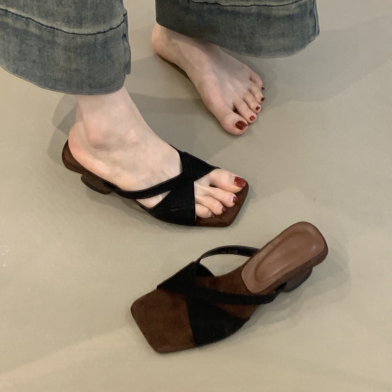 여성을위한 디자인 틈새 샌들 2025 여름 프랑스 복고풍 레오파드 프린트 크로스 웨지 하이힐 슬리퍼