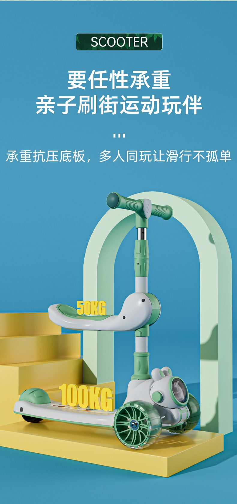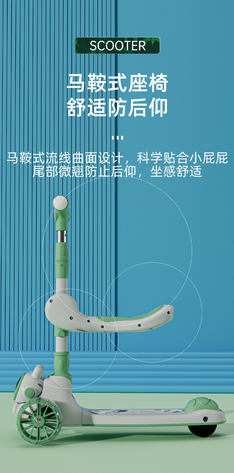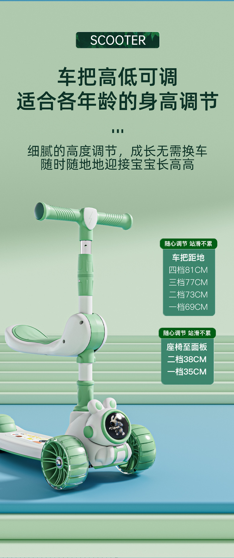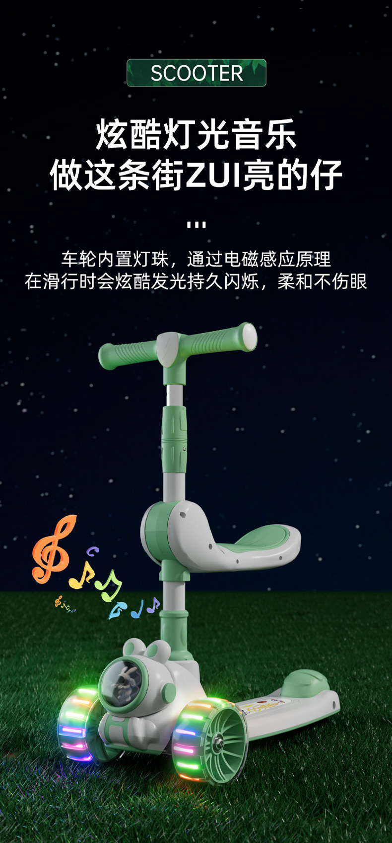 어린이용 스쿠터(3세 이상 남아 및 여아용 시트 포함) - 음악을 재생할 수 있는 미터 높이 스쿠터
