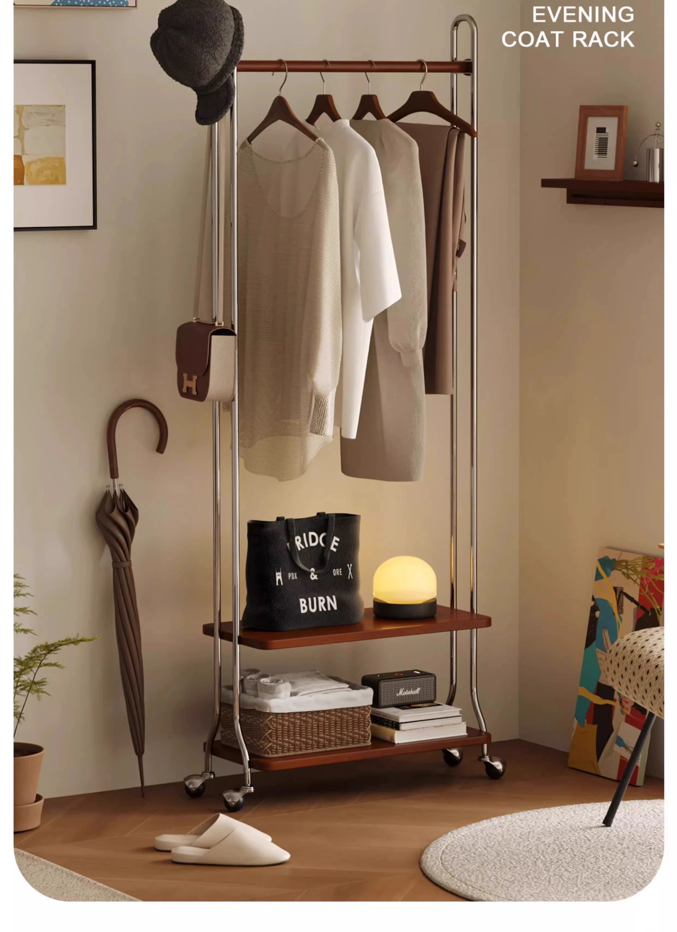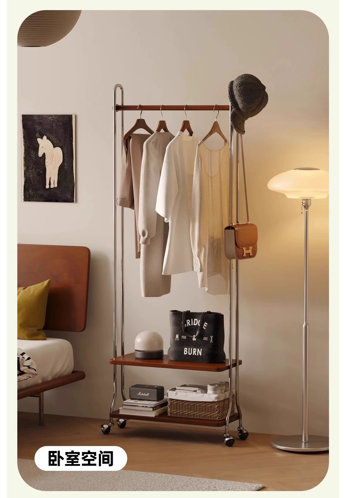 스테인레스 스틸 중고 옷걸이 바닥 침실 옷걸이 모바일 2025 새로운 코너 코트 랙 의류 보관함스토어 가기