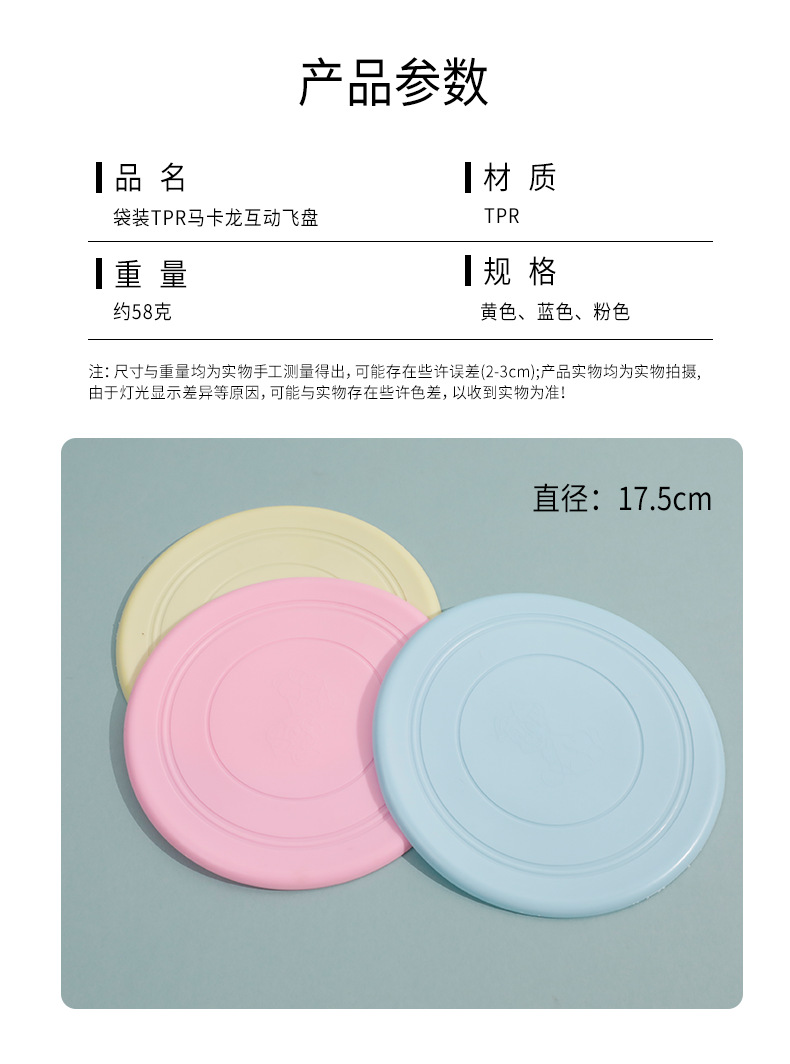 애완 동물 부드러운 플라스틱 프리스비 마카롱 대화 형 프리스비 물에 뜨는 물에 물어뜯기 방지 개 야외 훈련 던지기 프리스비 장난감스토어 가기