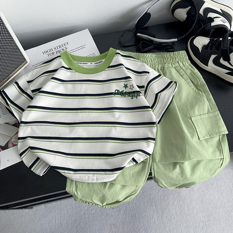 소년 의류 소년 여름 정장 2025 새로운 멋지고 잘 생긴 스포츠 어린이 얇은 반팔 바지 소년 여름 트렌드