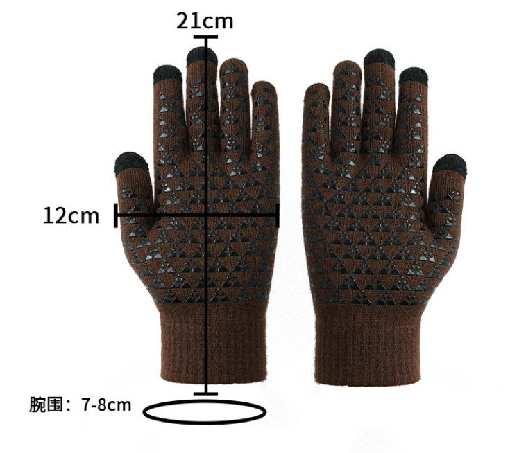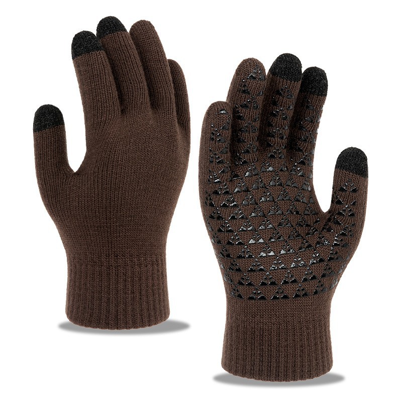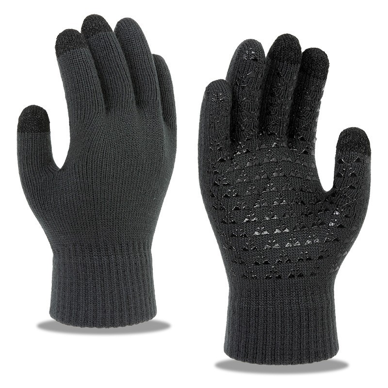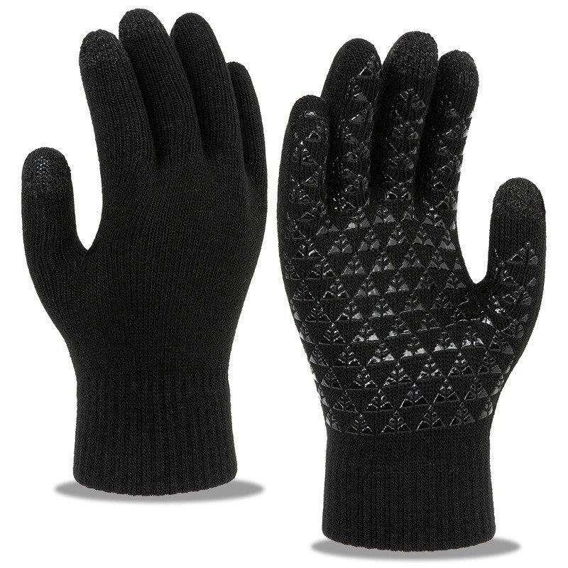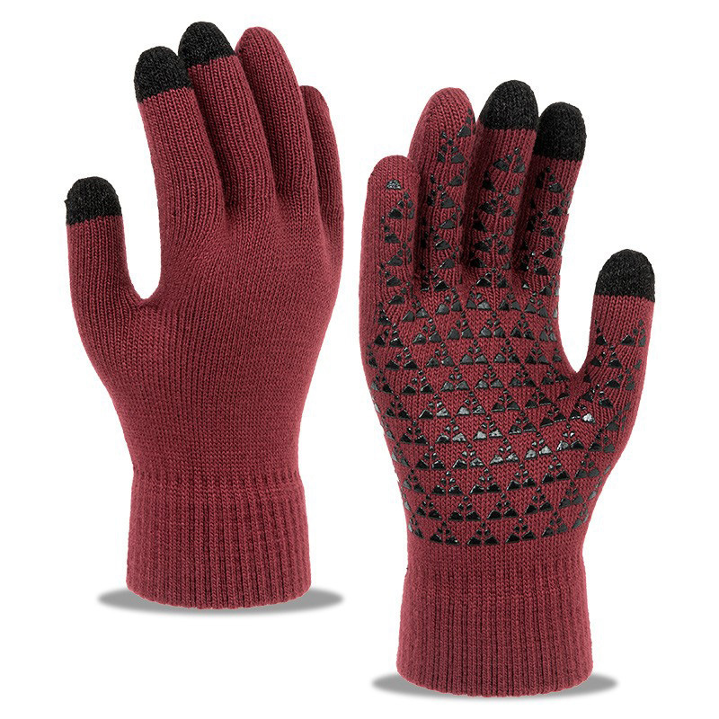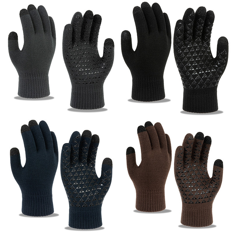 남녀공용 크로스보더 삼지 터치스크린 니트 장갑, 벨벳 안감, 두꺼운 방풍, 미끄럼 방지, 겨울용 보온 장갑