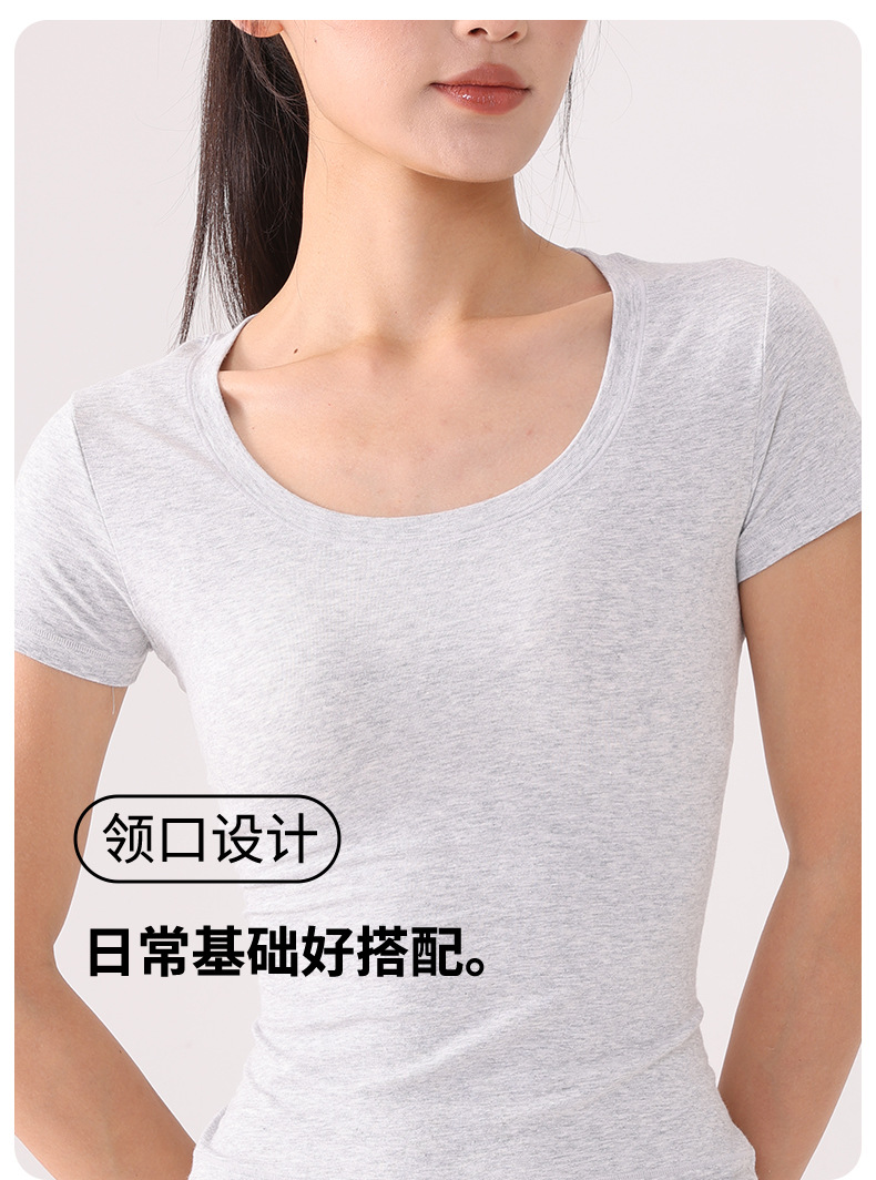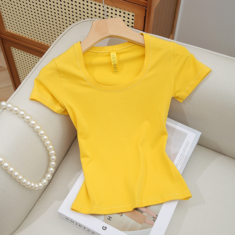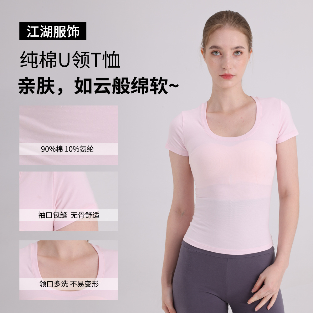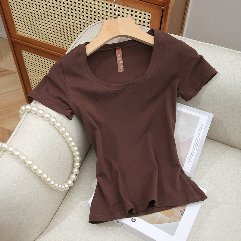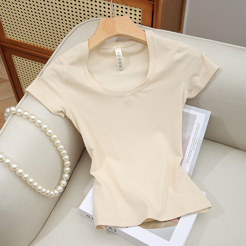 Skims 탑 U 넥 퓨어 코튼 반팔 여성용 바닥 셔츠 오른쪽 어깨 티셔츠 여름 통기성 슬리밍 반팔스토어 가기