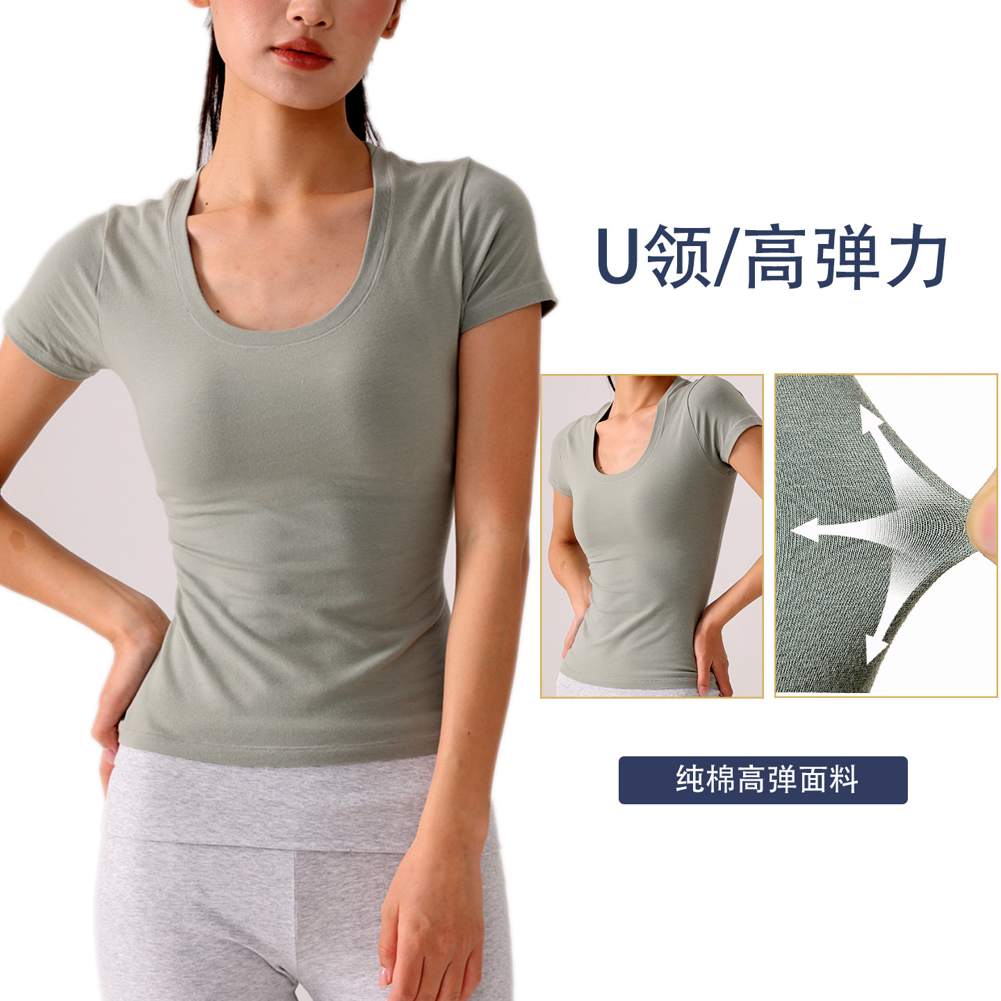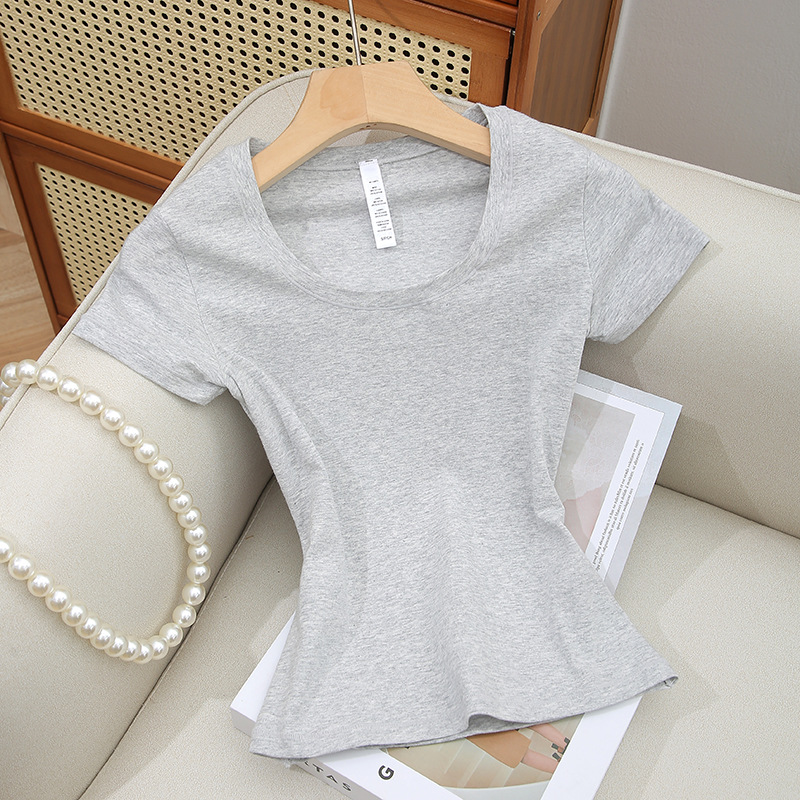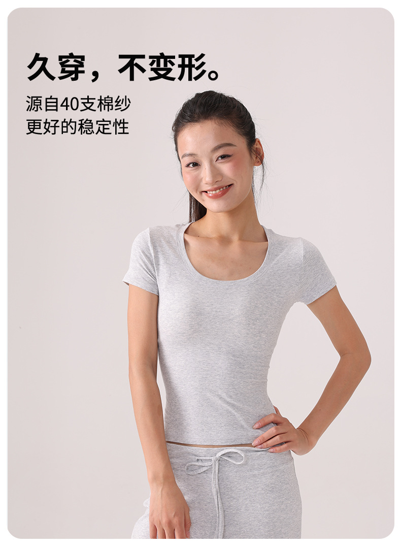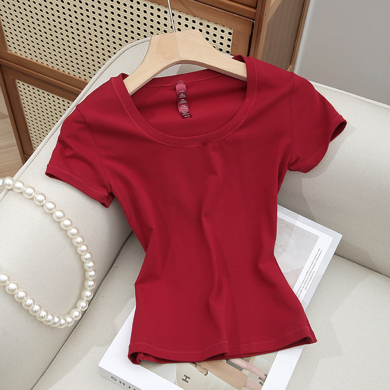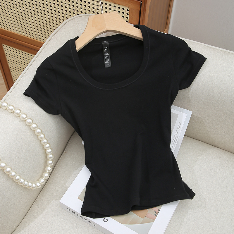 Skims 탑 U 넥 퓨어 코튼 반팔 여성용 바닥 셔츠 오른쪽 어깨 티셔츠 여름 통기성 슬리밍 반팔스토어 가기