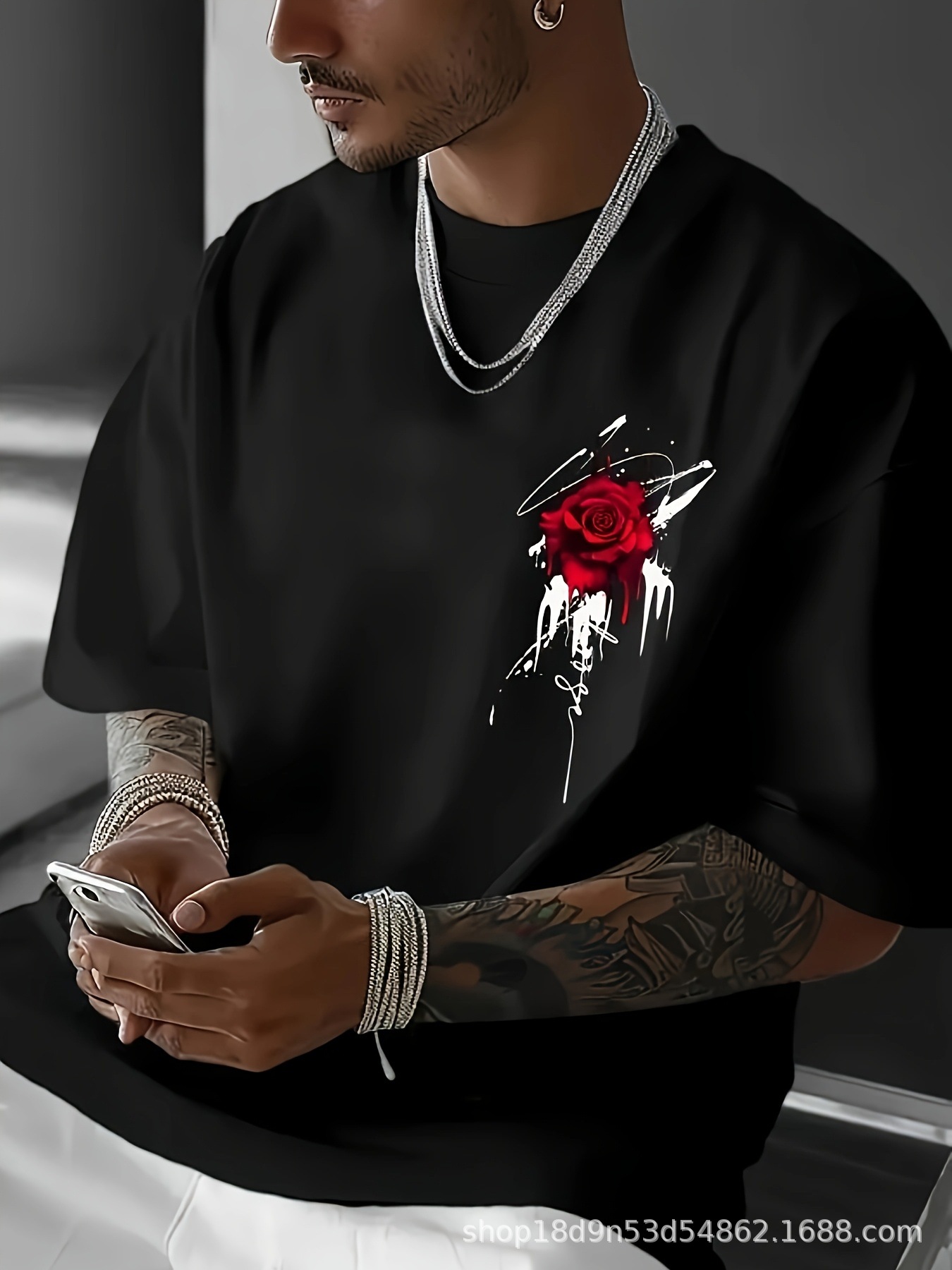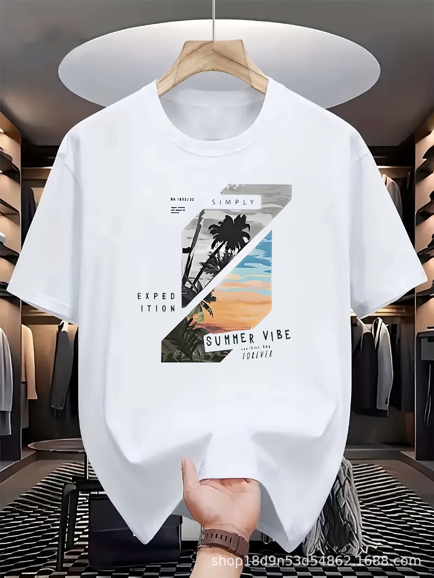 국경 간 스팟 반팔 티셔츠 남성 유럽과 미국의 새로운 프린트 탑 여름 라운드 넥 대형 반팔 티셔츠 대외 무역스토어 가기