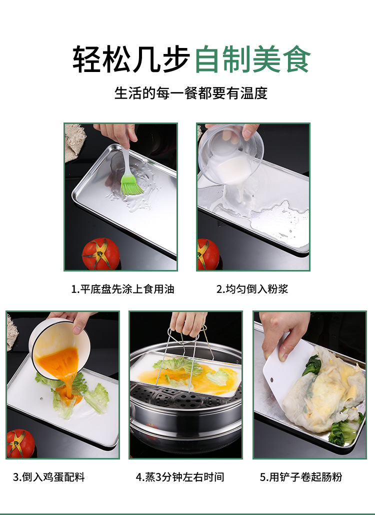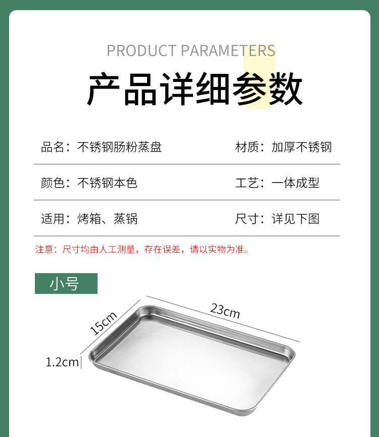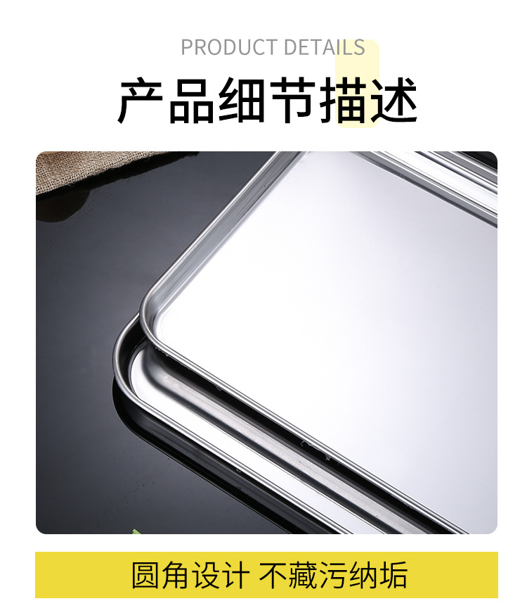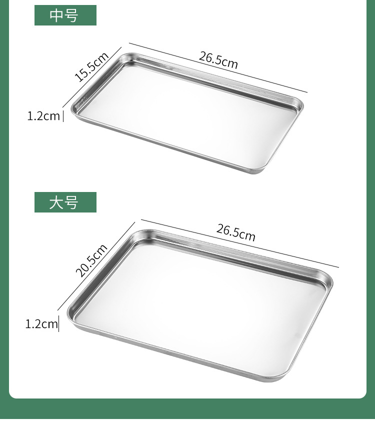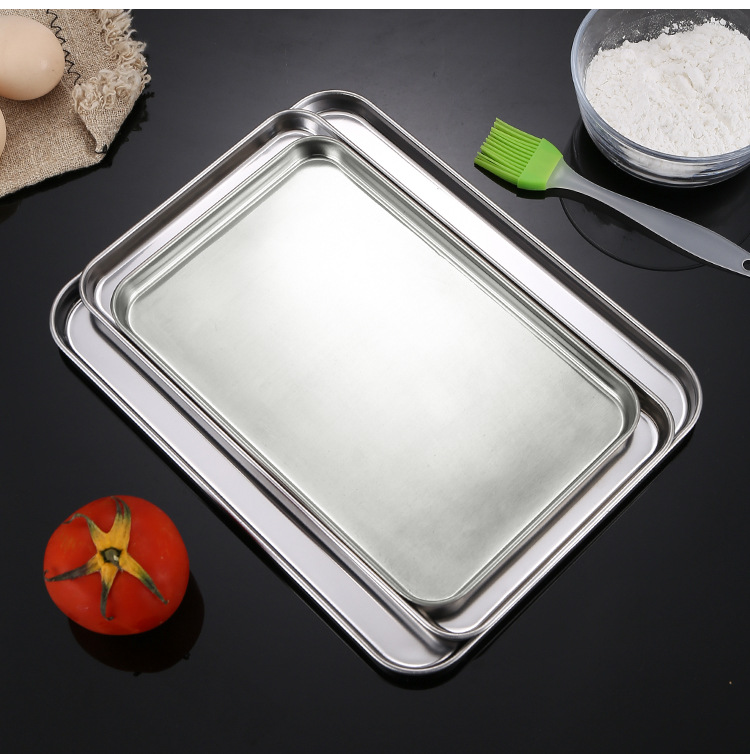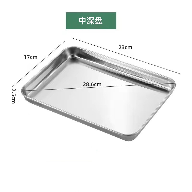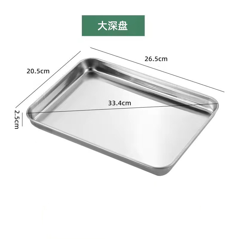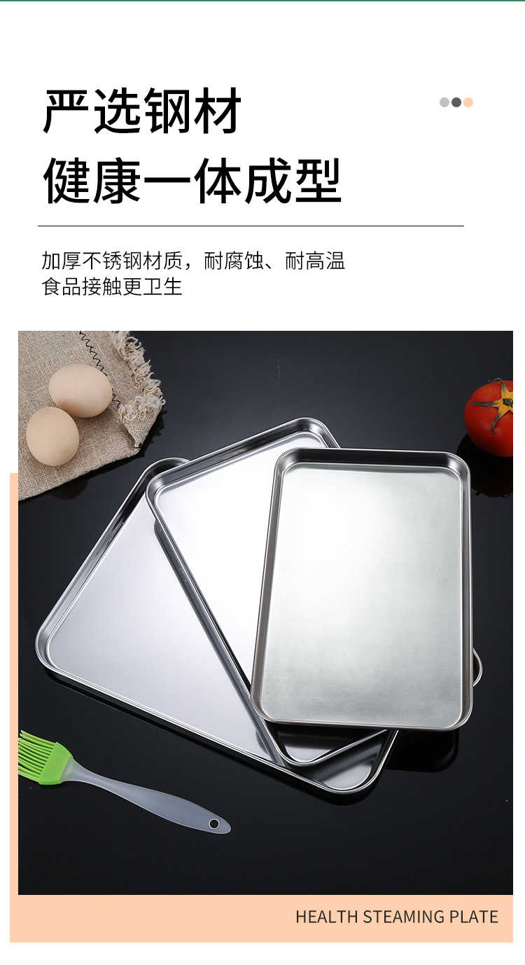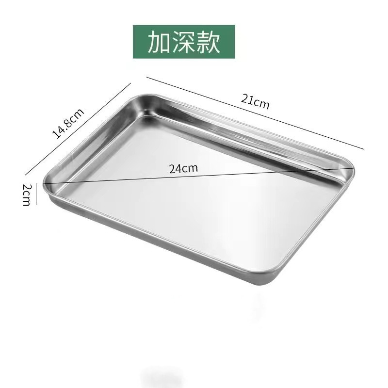 스테인레스 스틸 일본식 평면 사각형 접시 두꺼운 냉면 소시지 파우더 찜 접시 주방 베이킹 팬 304 요리 물 트레이