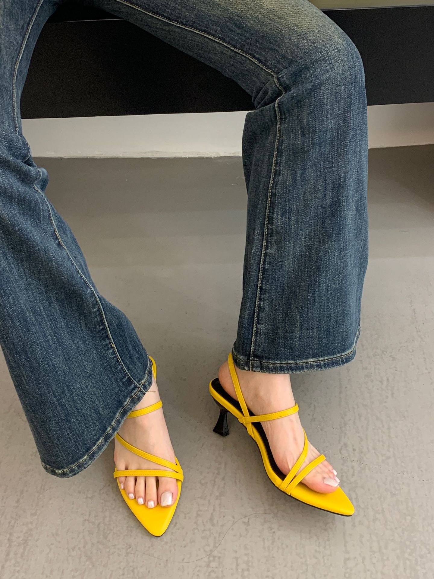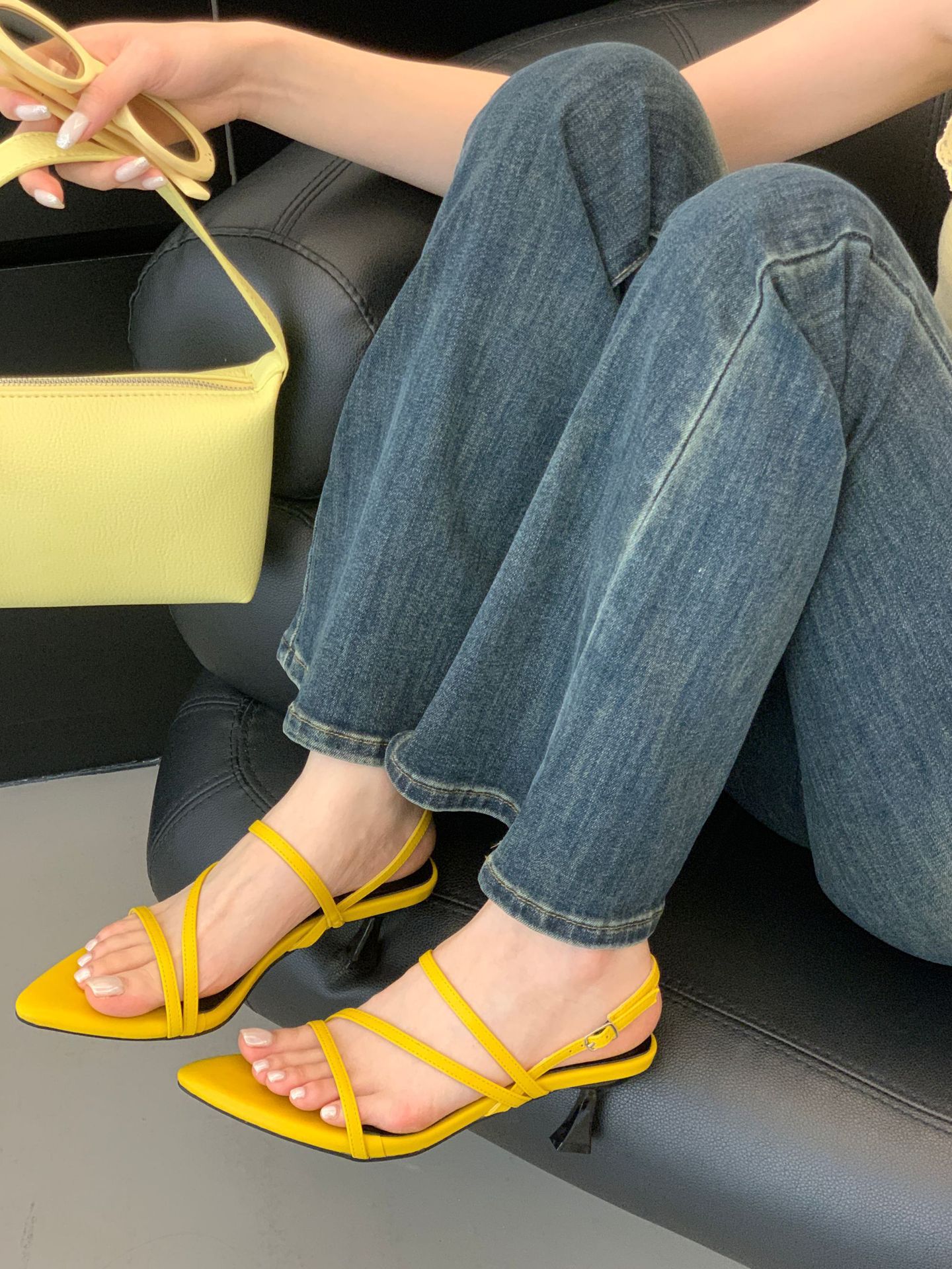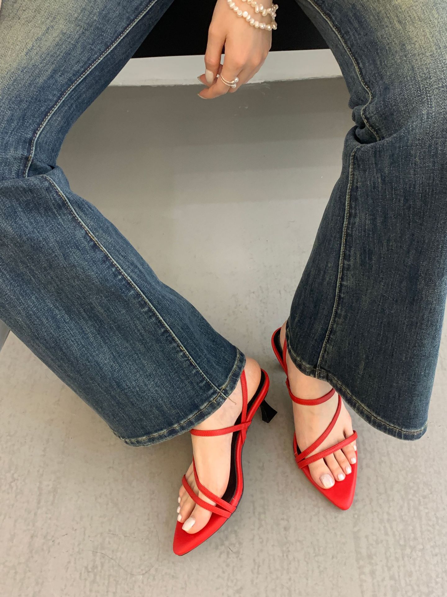 여성을위한 뾰족한 샌들 2025 여름 새로운 디자인 얇은 스트랩 부드러운 바닥 로마 얇은 스트랩 얇은 힐 샌들