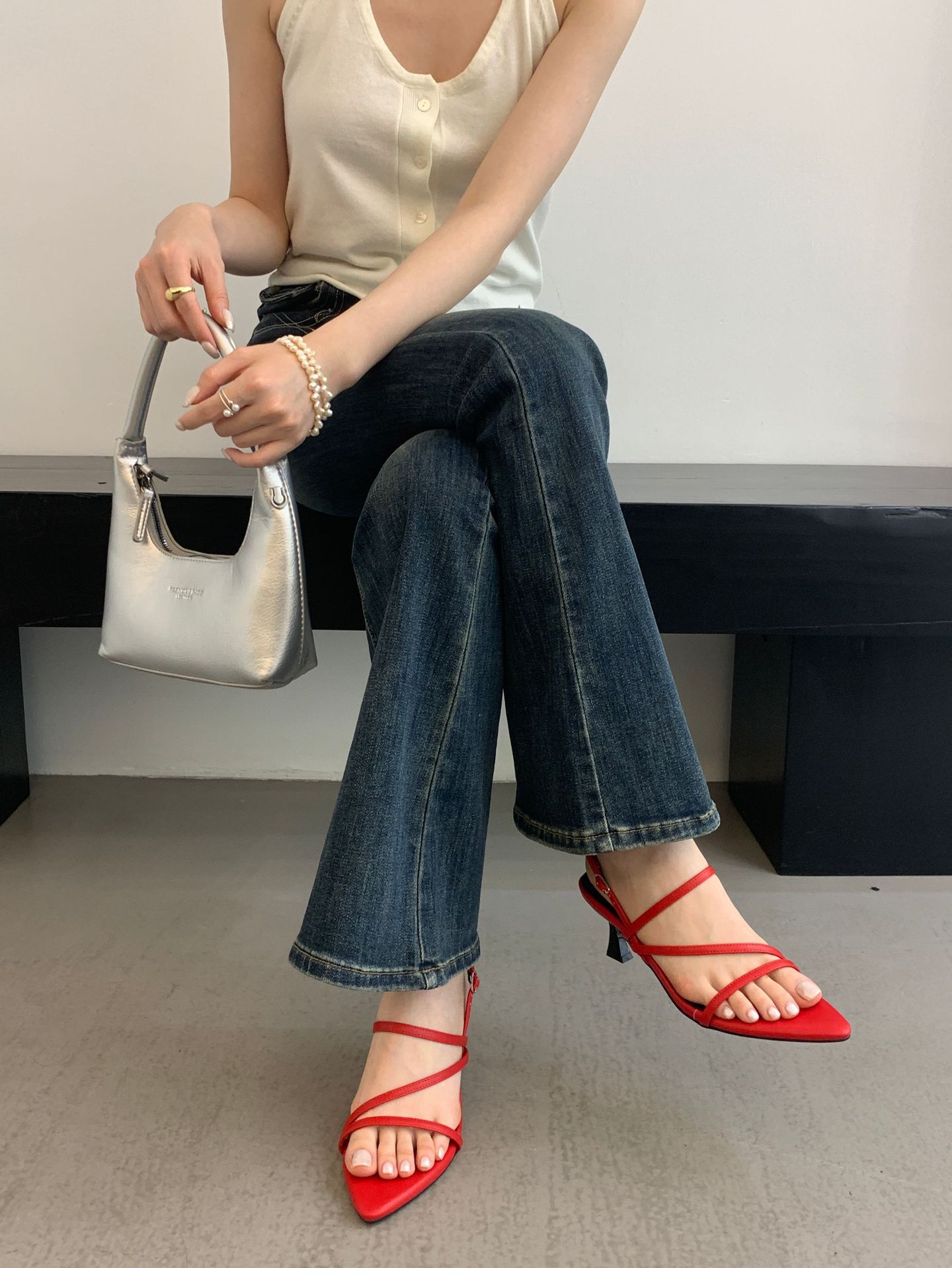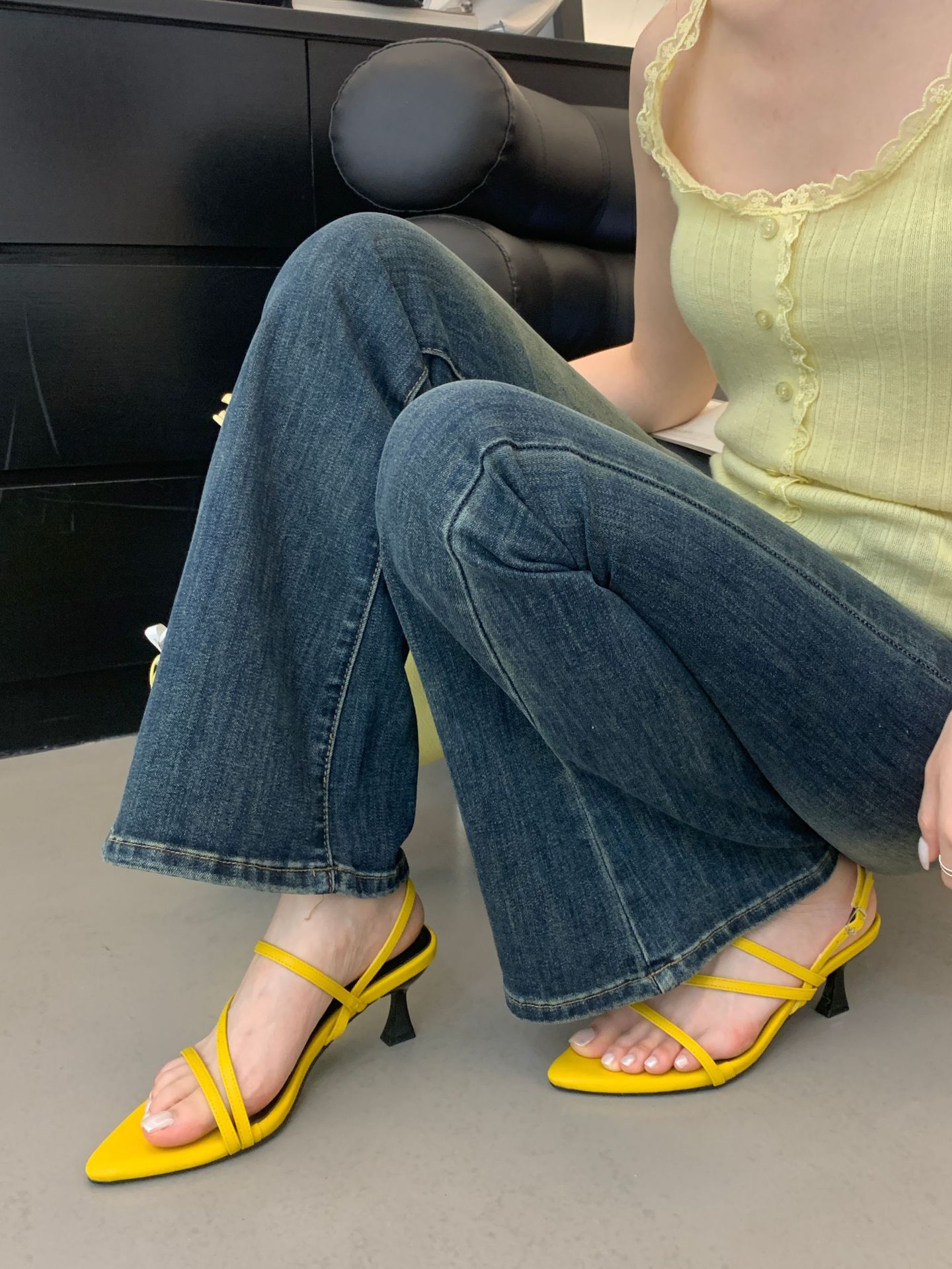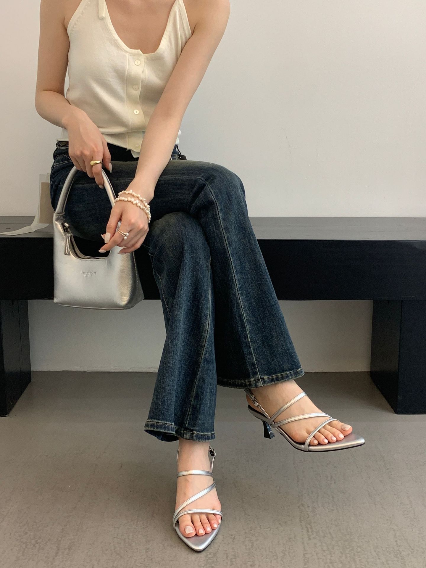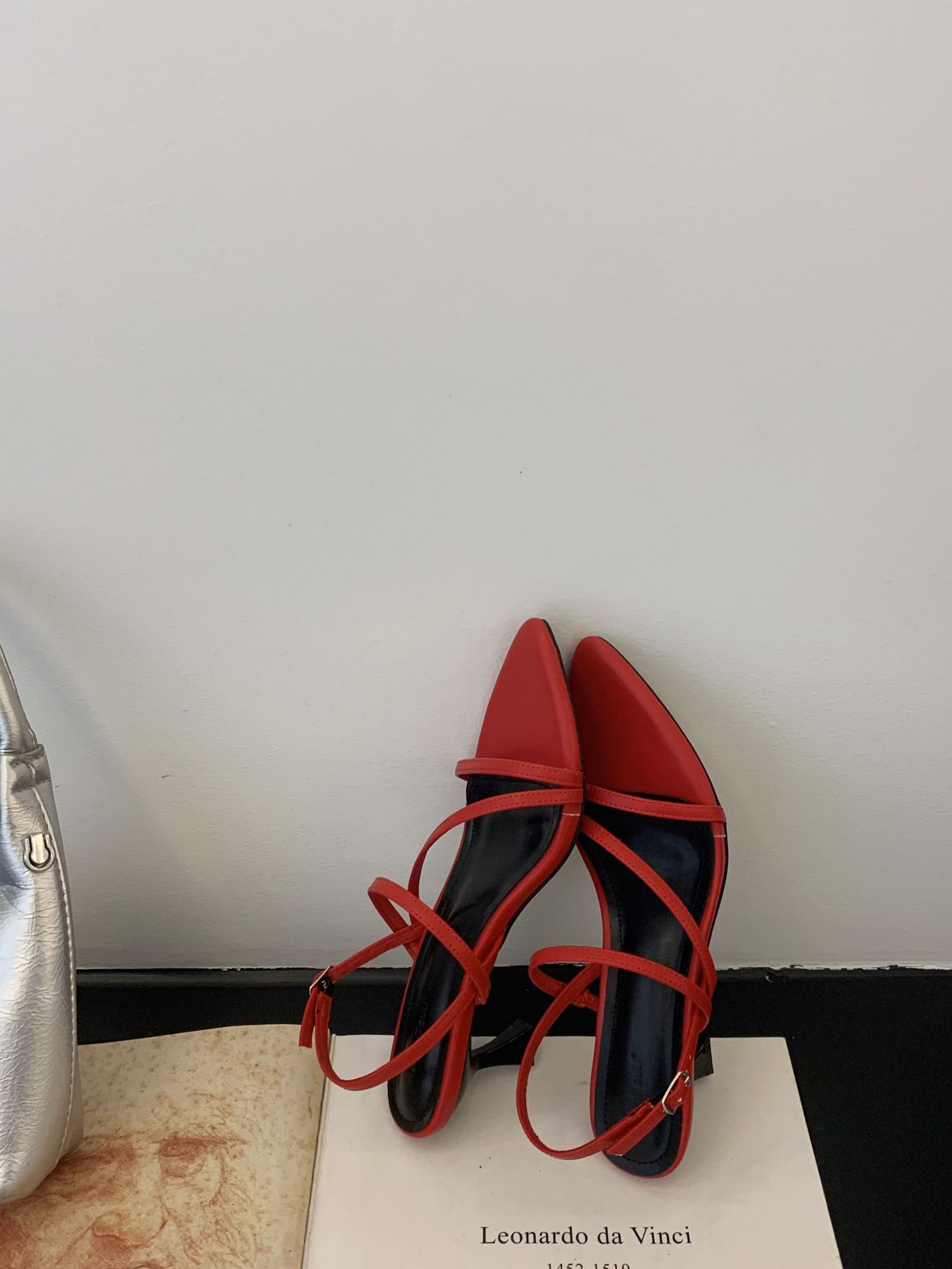 여성을위한 뾰족한 샌들 2025 여름 새로운 디자인 얇은 스트랩 부드러운 바닥 로마 얇은 스트랩 얇은 힐 샌들