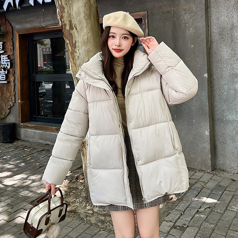 재킷 솔리드 컬러 후드 두꺼운 빵 재킷 여성 겨울 신입생 캐주얼 따뜻한 코튼 패딩 재킷 코튼 패딩