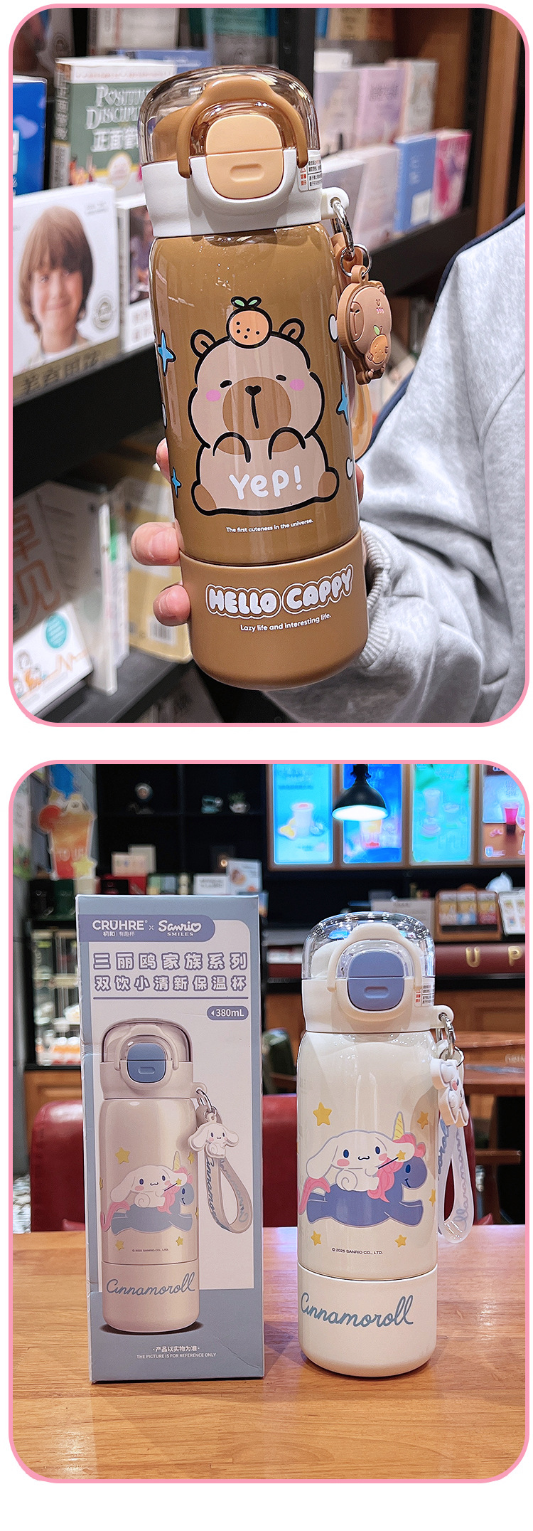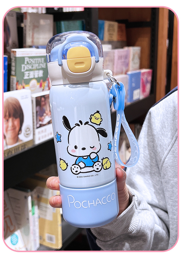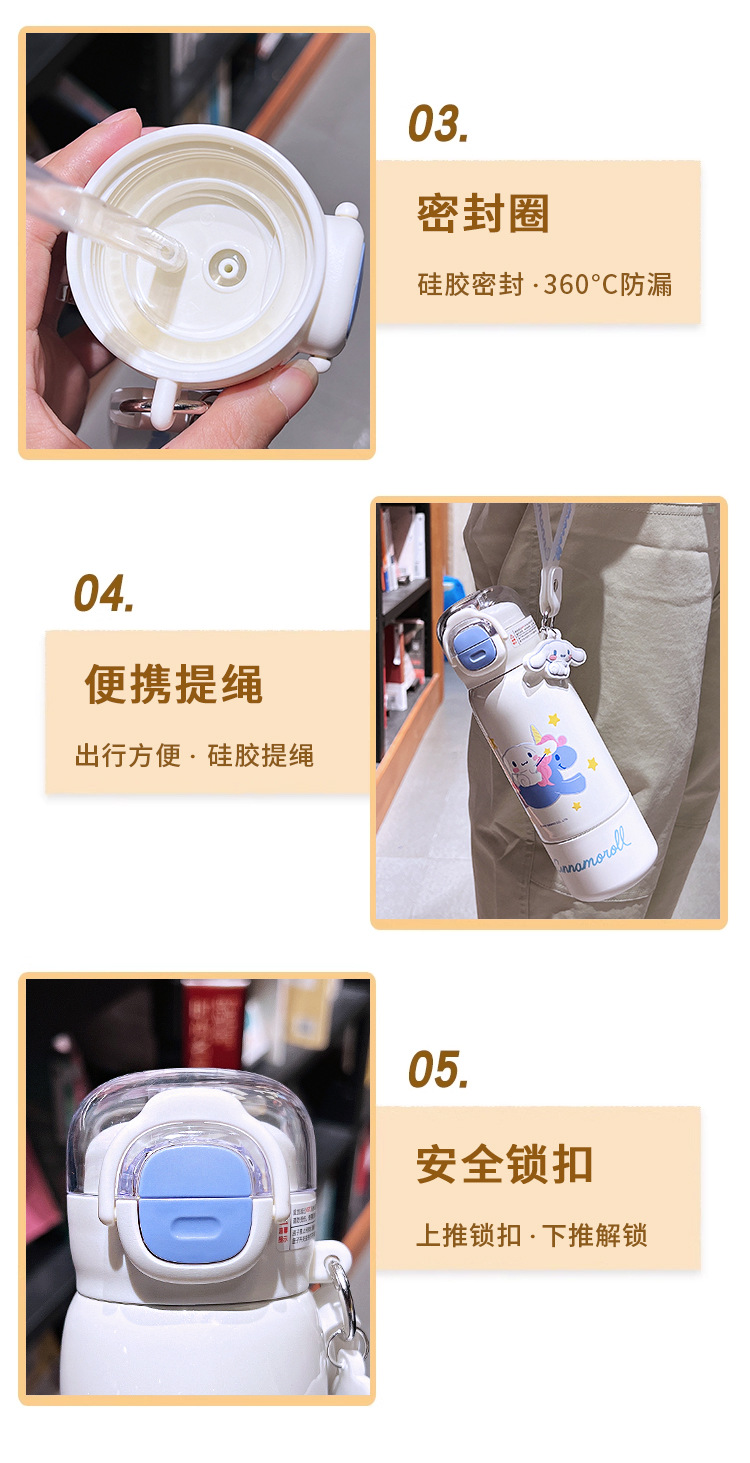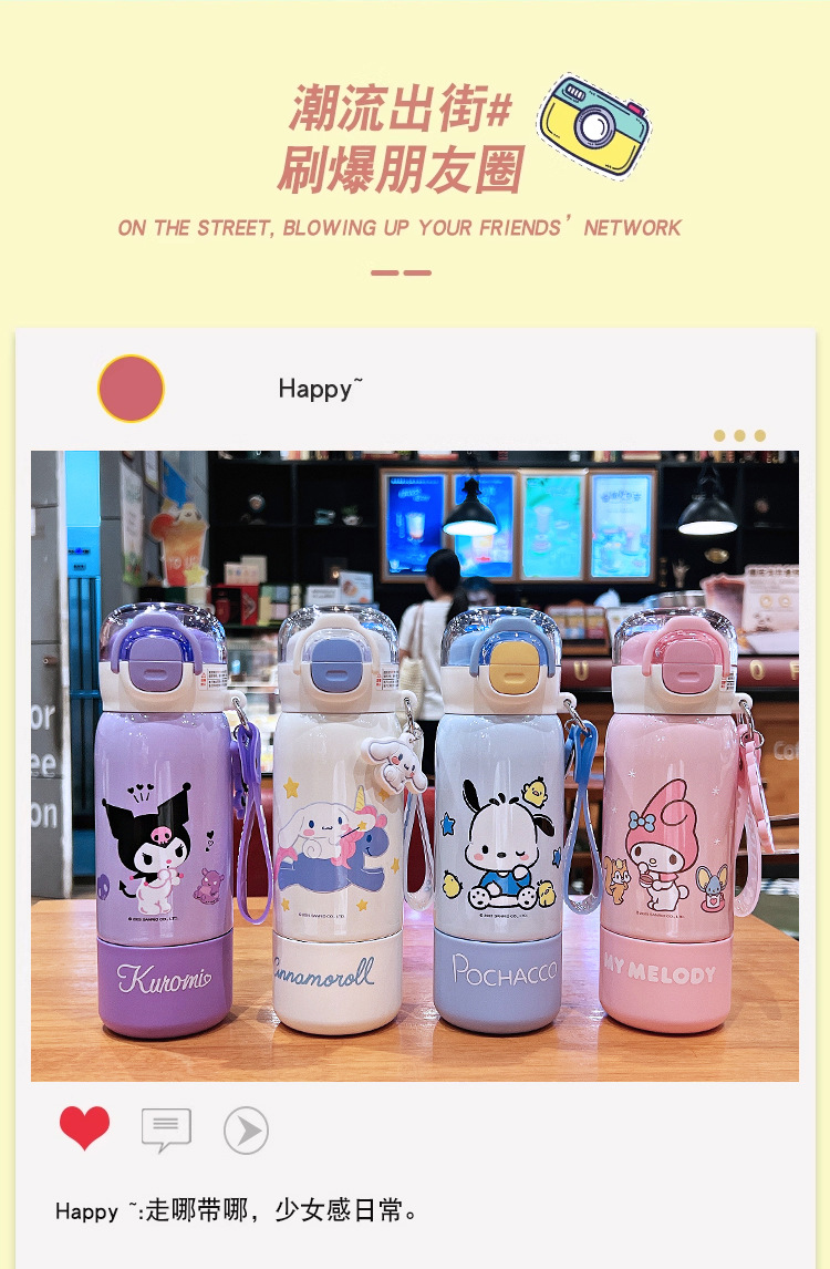 소녀들을 위한 산리오 보온병 컵, 귀여운 쿨로미 밀짚 컵, 학교에 가는 어린이를 위한 한 컵, 3가지 음료, 휴대용 주전자