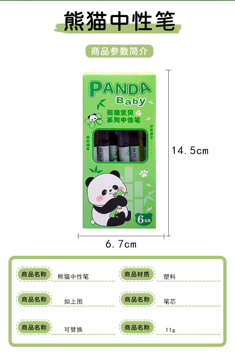 만화 팬더 젤 펜 학생 스트레이트 액체 볼펜 사무실 서명 펜 귀여운 속건성 워터 브러시 펜