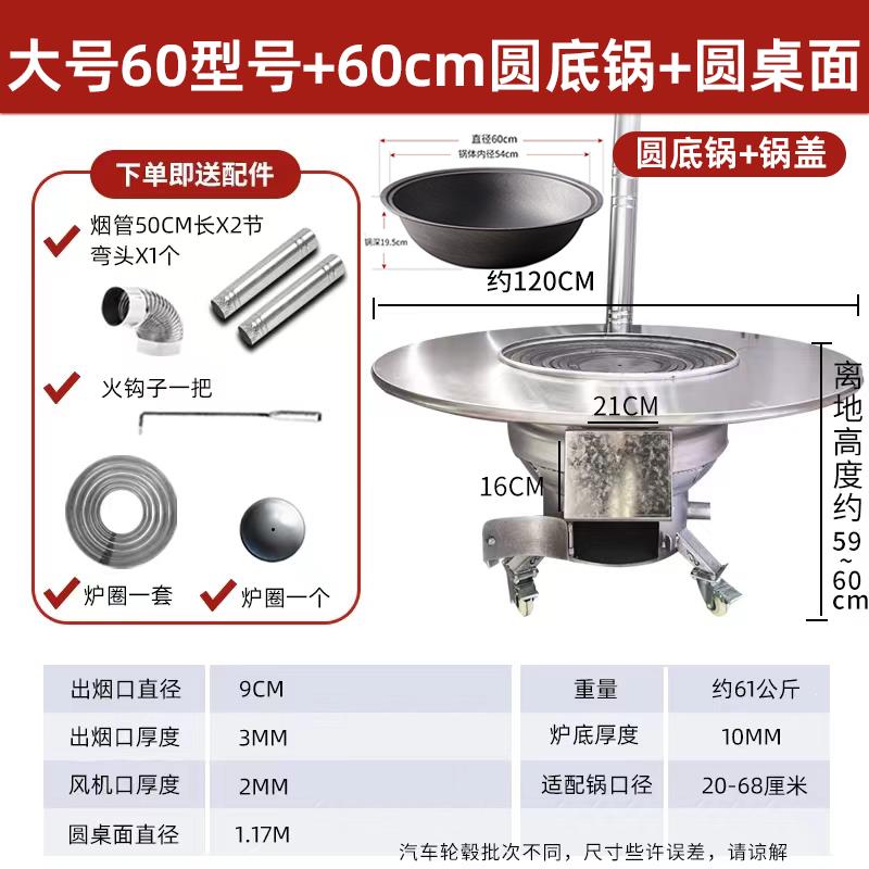 • [대형 - 상위 버전] 60구경 모델 + 60cm 둥근 바닥 냄비 + 120cm 직경 원형 테이블