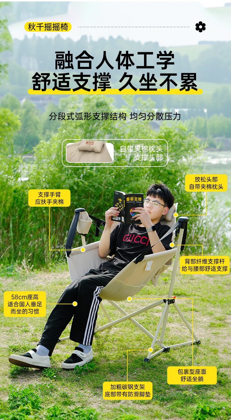 야외 휴대용 캠핑 흔들의자 접이식 흔들의자 캠핑 비치 의자 레저 의자 가정용 피크닉 그네 의자스토어 가기