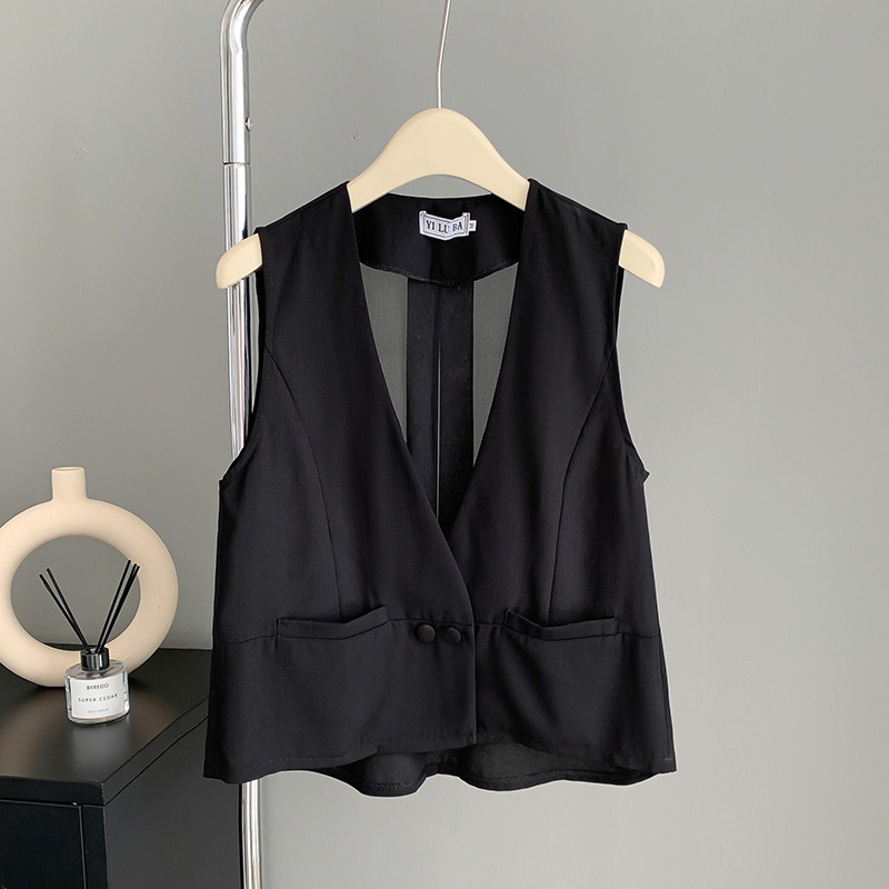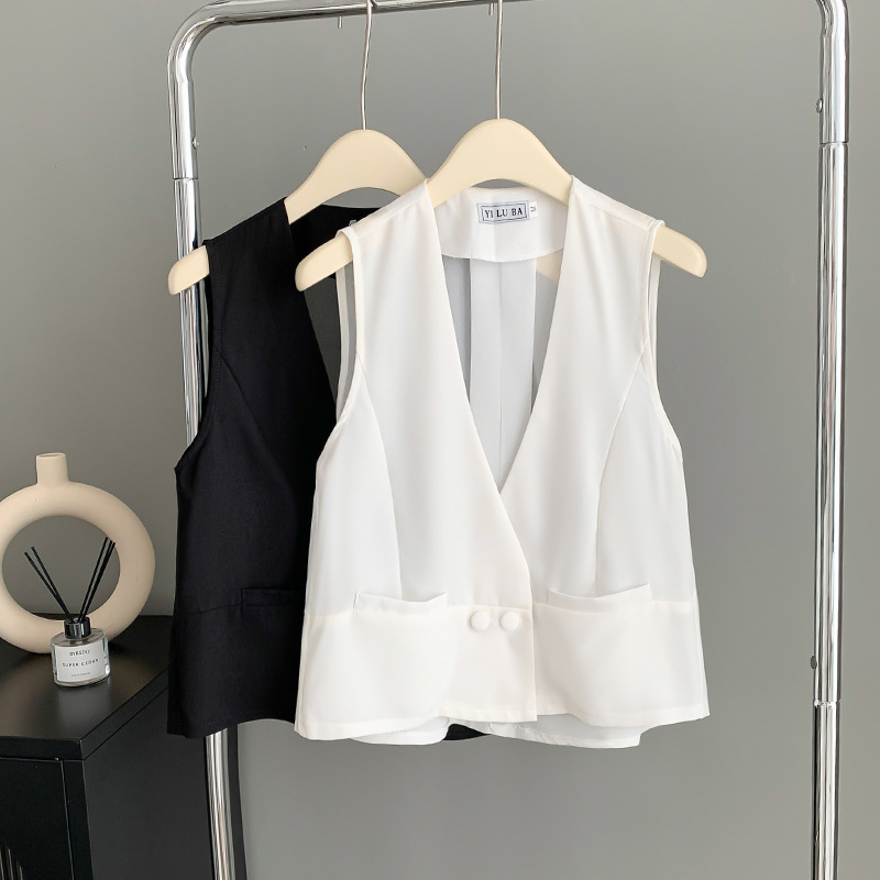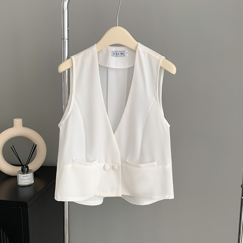 시폰 조끼 여성 짧은 여름 얇은 느슨한 슬리밍 레이어드 조끼 조랑말 클립 여성 스타일스토어 가기