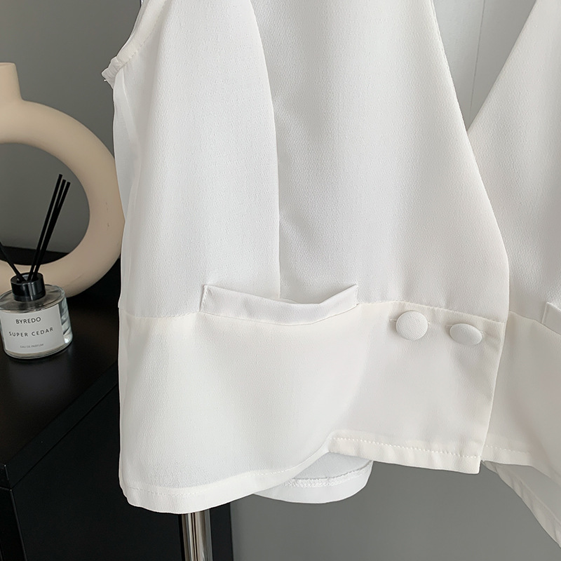 시폰 조끼 여성 짧은 여름 얇은 느슨한 슬리밍 레이어드 조끼 조랑말 클립 여성 스타일