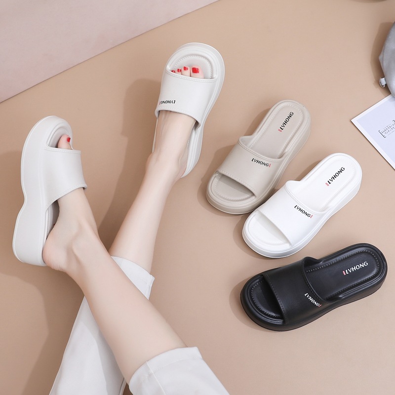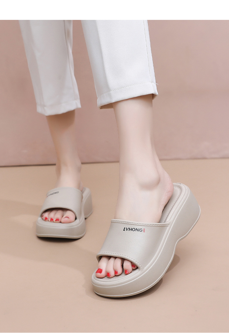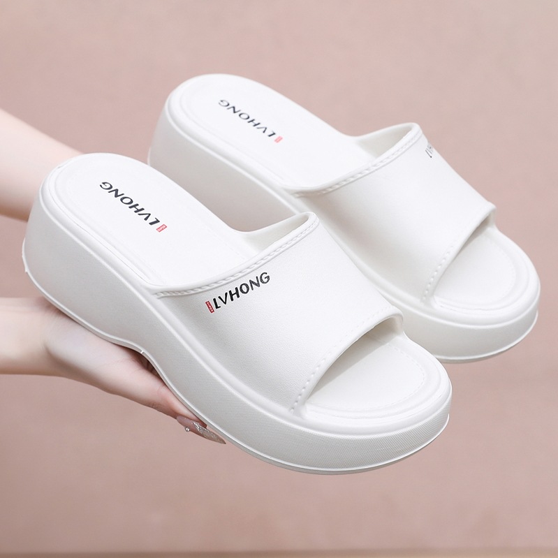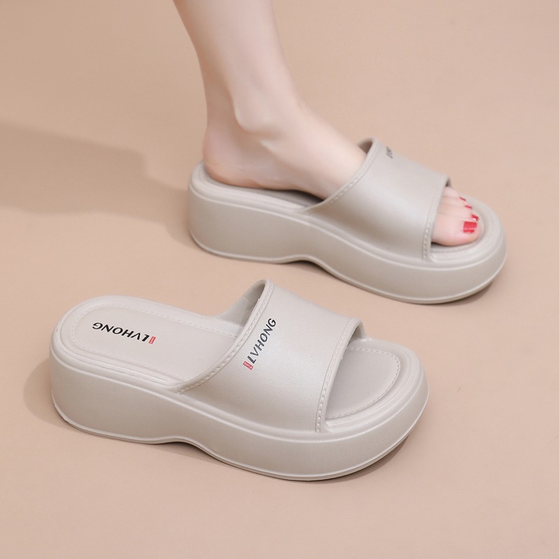 여성용 EVA 슬리퍼, 여름용, 하이힐, 두꺼운 밑창, 가정용, 밟는 듯한 편안함, 외출용, 캐주얼, 원스트랩 슬리퍼, 도매스토어 가기