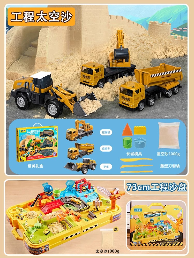 • 엔지니어링 모래 테이블 모험(무료 1000g 우주 모래) + 합금 엔지니어링 차량 우주 모래 세트