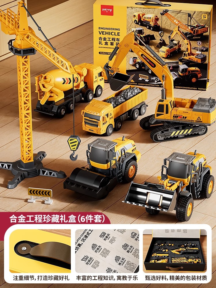 • 맞춤형 선물 상자 [특대형] 합금 엔지니어링 차량 7대, 지도 + 장애물 소품 패키지 포함