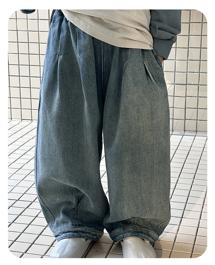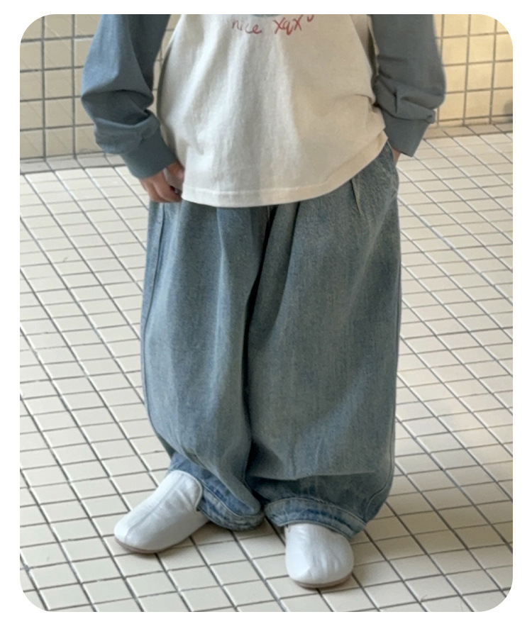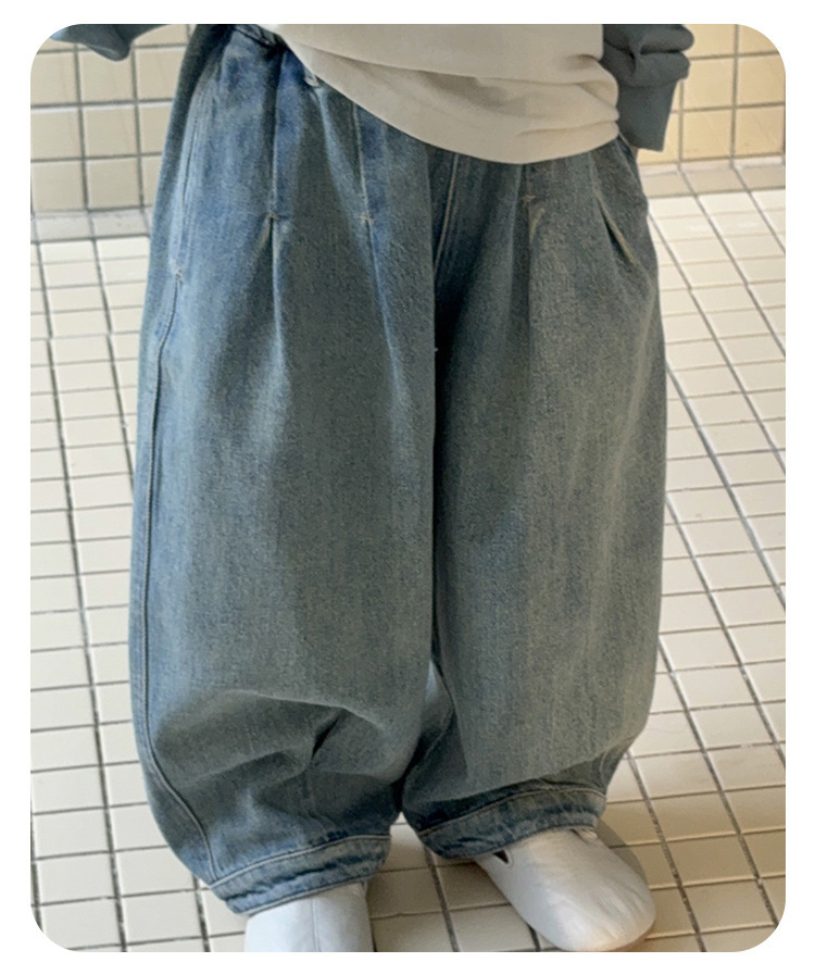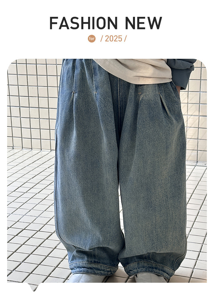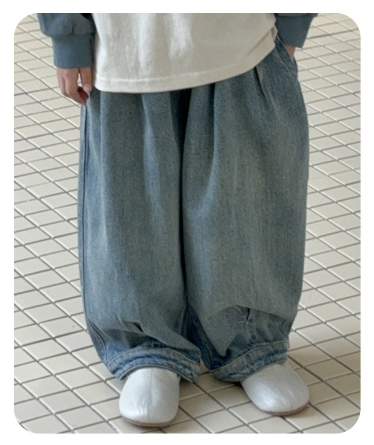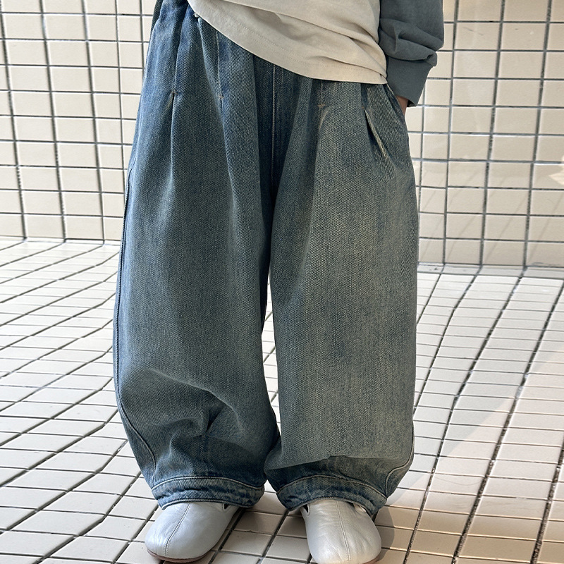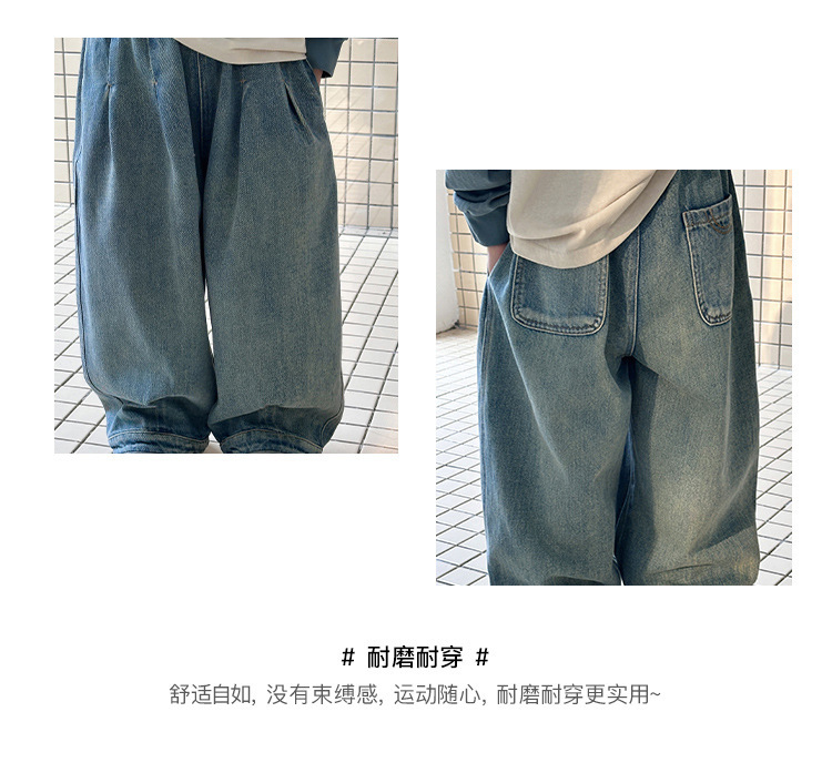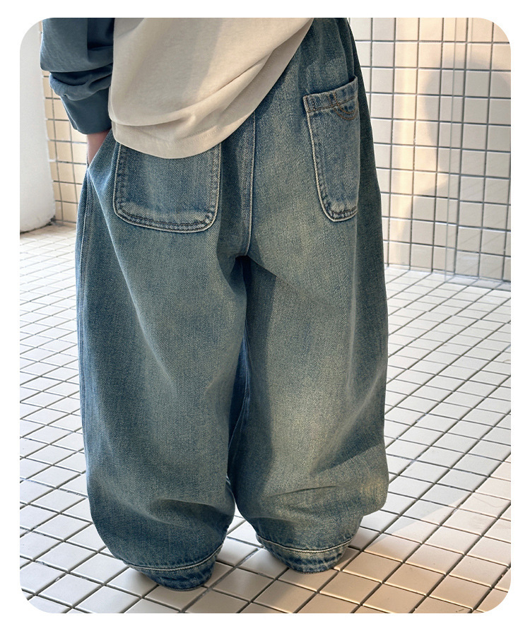 남아 청바지, 봄 신상 바지, 중소형 아동용 멋쟁이 캐주얼 스트레이트 팬츠, 아동용 한국식 루즈 와이드 팬츠스토어 가기