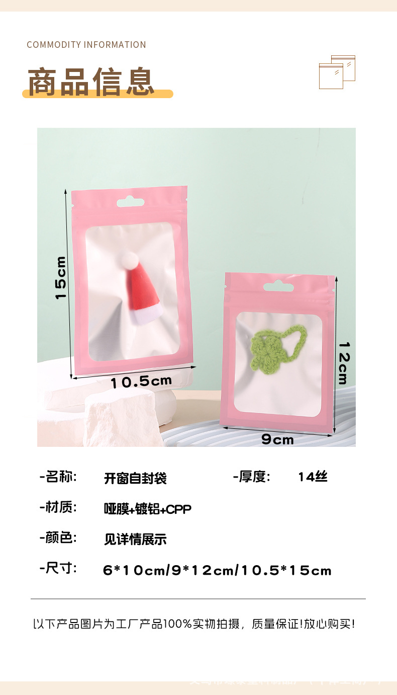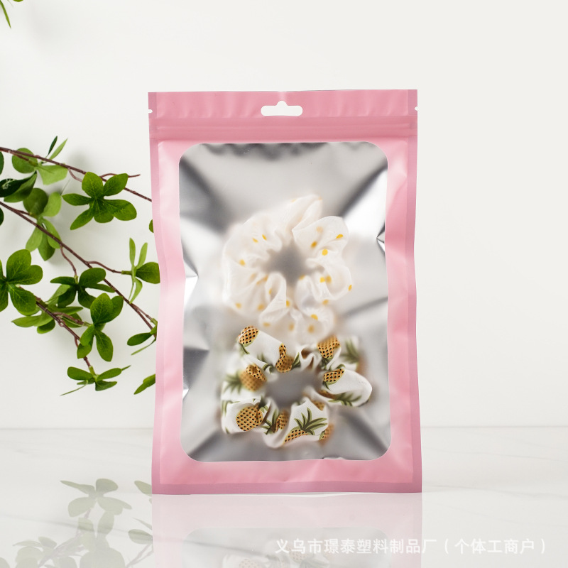 국경 간 14 실크 핑크 무광택 알루미늄 창 음양 뼈 지퍼 잠금 가방 쥬얼리 휴대 전화 케이스 cpp 포장 자체 접착 가방 도매스토어 가기
