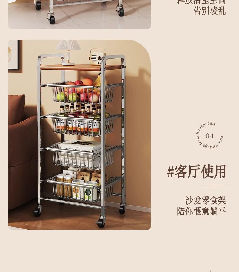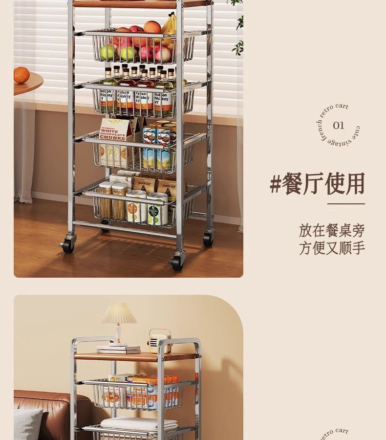 중고 트롤리 보관함 거실 모바일 바퀴 달린 스낵 보관함 홈 복고풍 주방 바닥 보관함스토어 가기