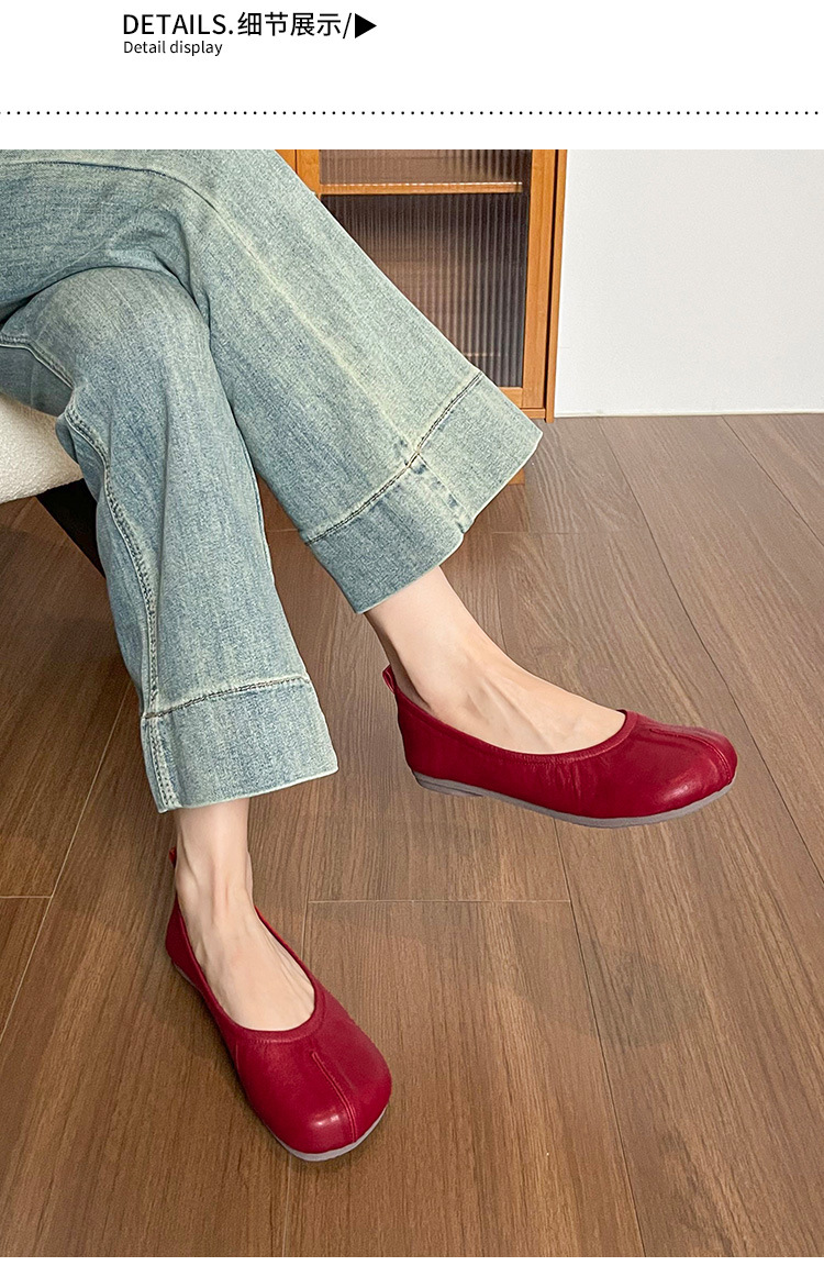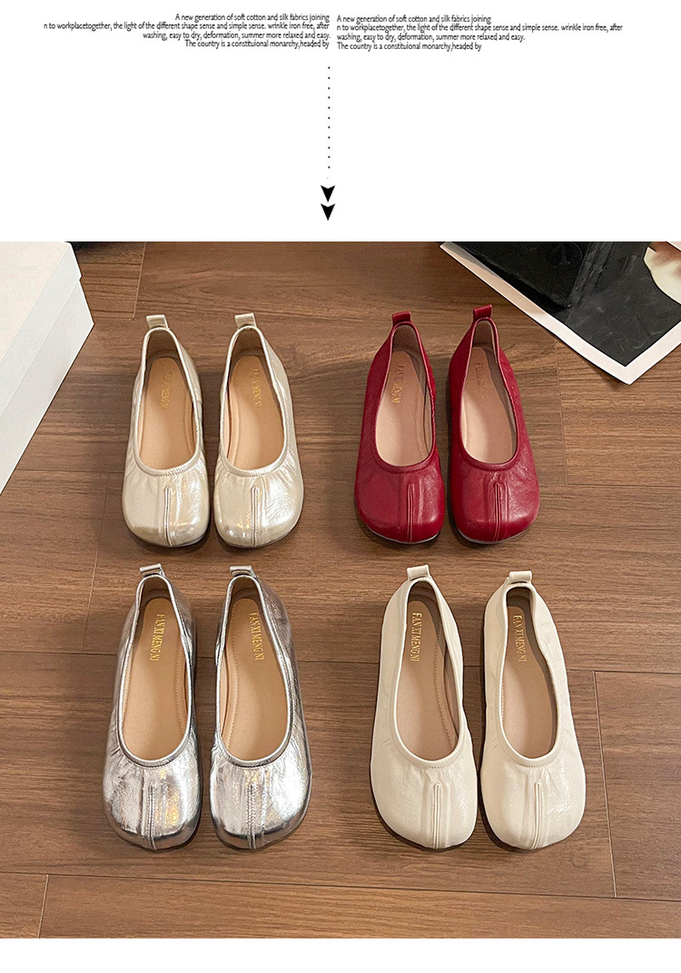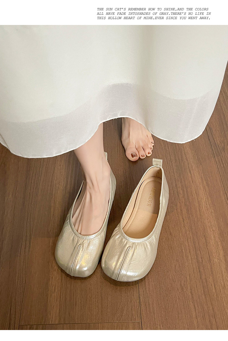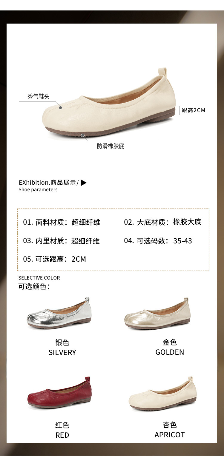 Q816-1 여성용 여름 신상 프렌치 스타일 부드러운 소재의 라운드 토 플랫 슈즈, 스커트와 잘 어울리는 여성용 플랫 슈즈스토어 가기