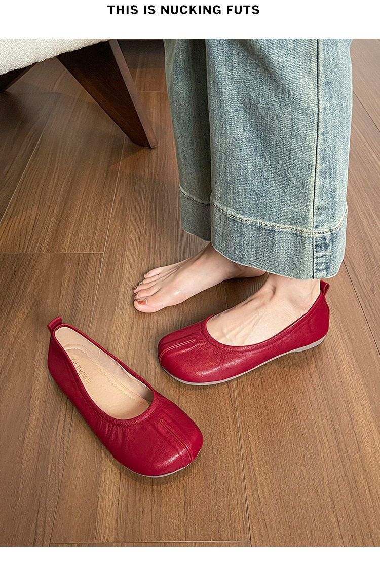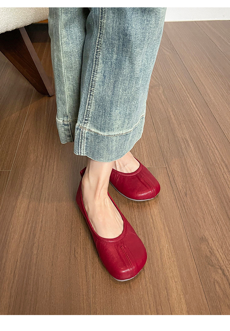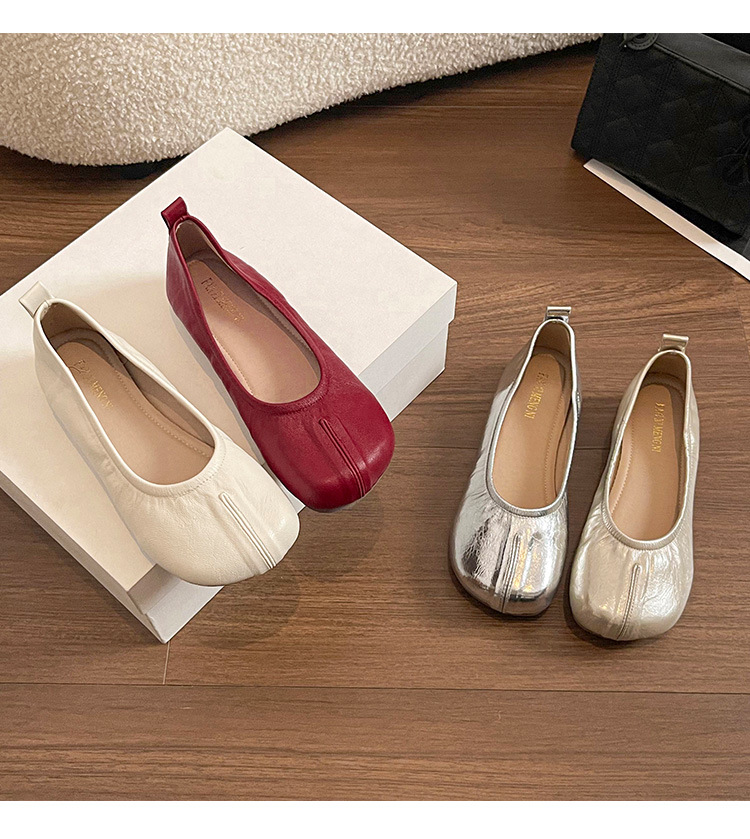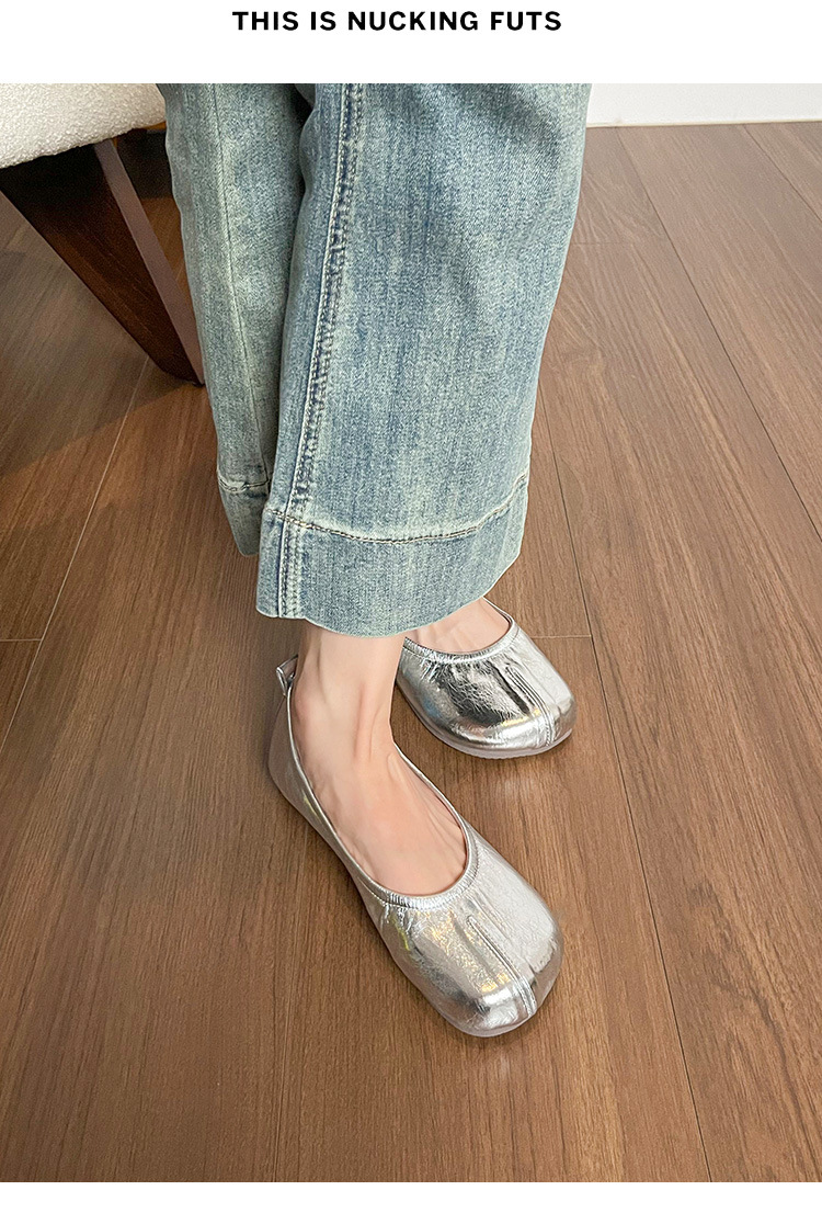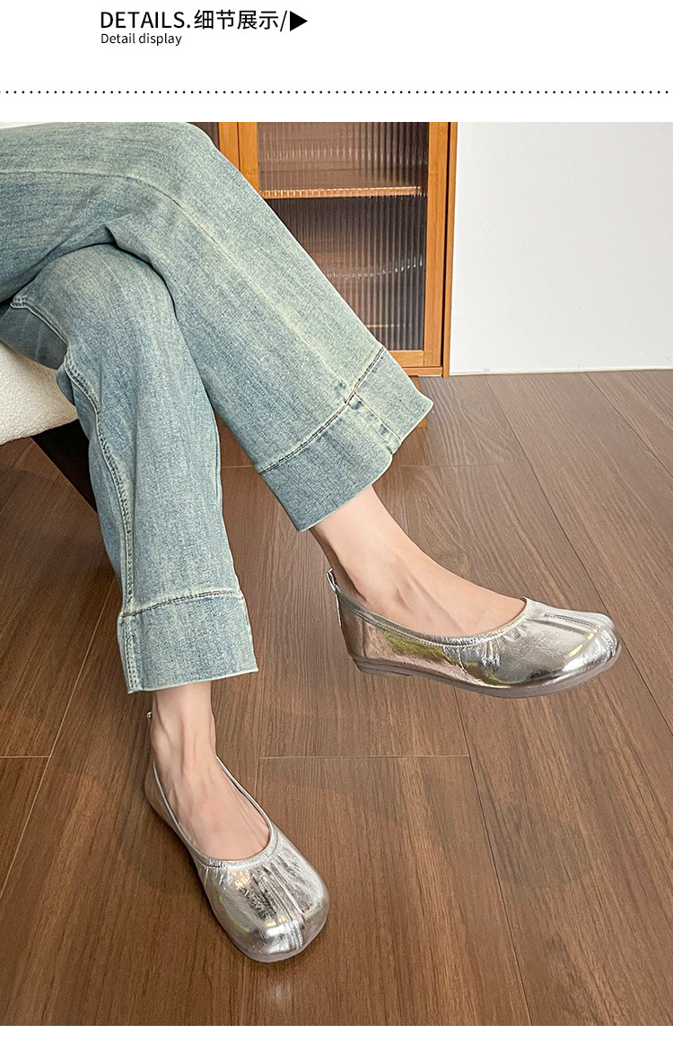 Q816-1 여성용 여름 신상 프렌치 스타일 부드러운 소재의 라운드 토 플랫 슈즈, 스커트와 잘 어울리는 여성용 플랫 슈즈스토어 가기