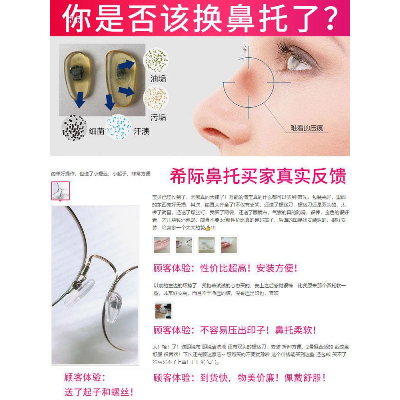 안경 코 패드, 실리콘 에어백, 매우 부드러운 미끄럼 방지 코 패드, 안경 프레임, 코 빔 액세서리, 버클 삽입형 에어 쿠션 안경 홀더스토어 가기