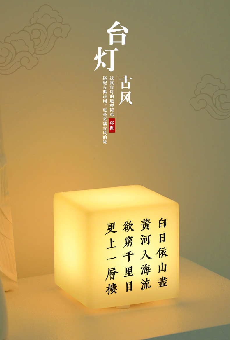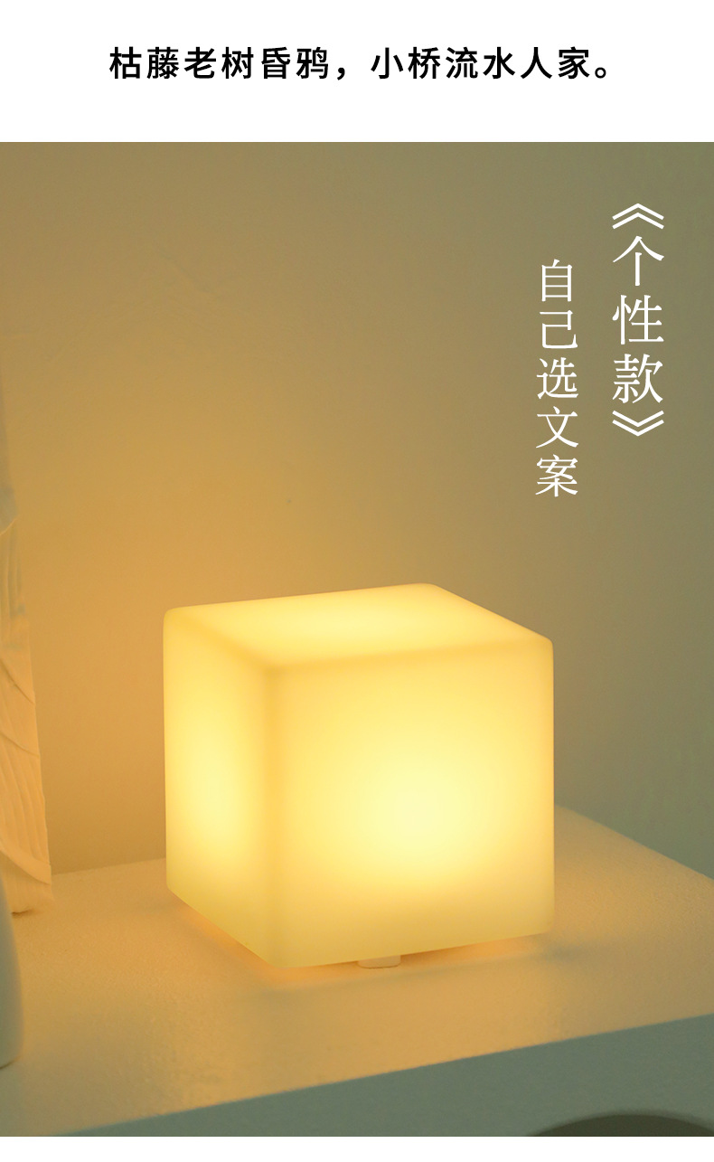 사각형 야간 조명 분위기 충전 어린이 수면 침실 머리맡 눈 보호 데스크탑 테이블 램프 인쇄 가능한 로고 텍스트스토어 가기