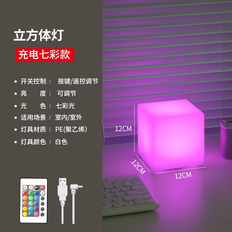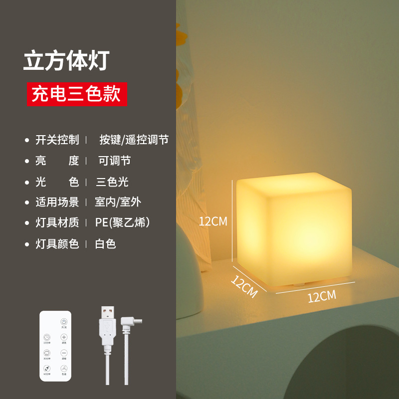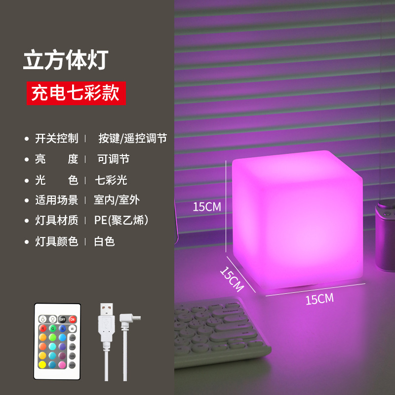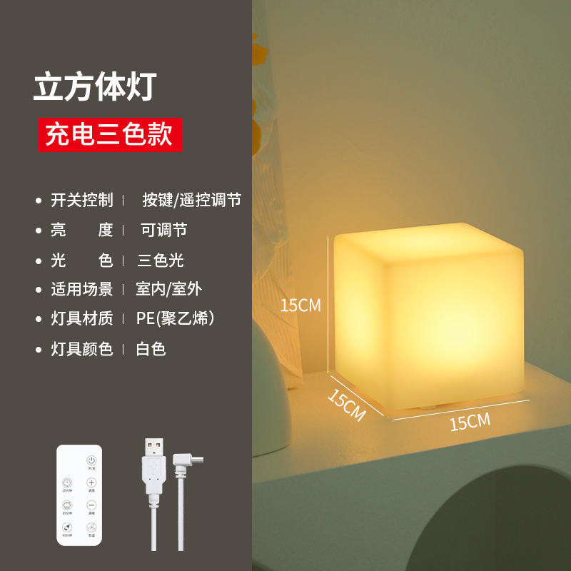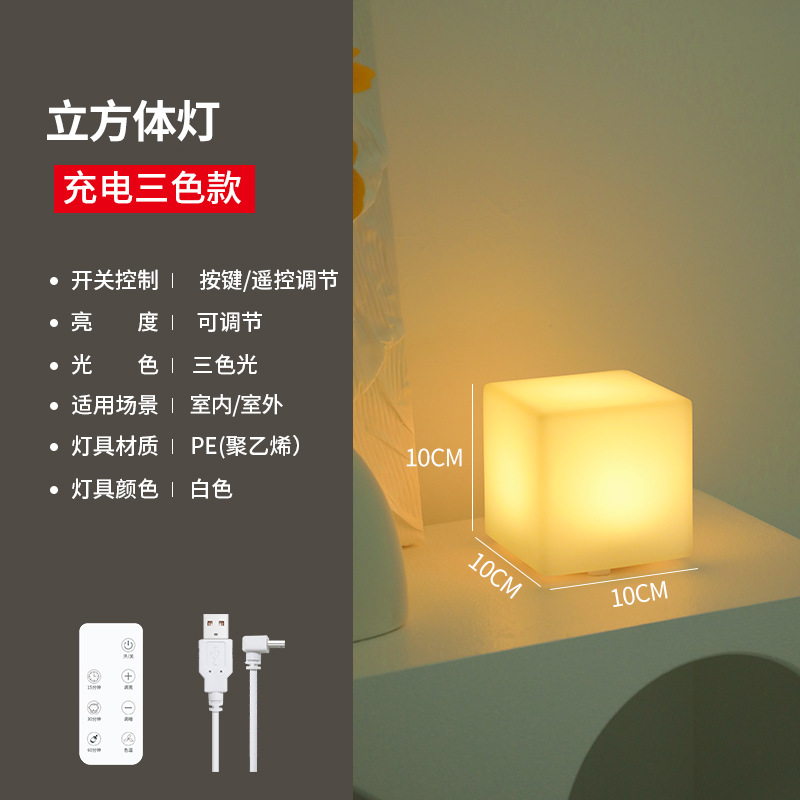 사각형 야간 조명 분위기 충전 어린이 수면 침실 머리맡 눈 보호 데스크탑 테이블 램프 인쇄 가능한 로고 텍스트