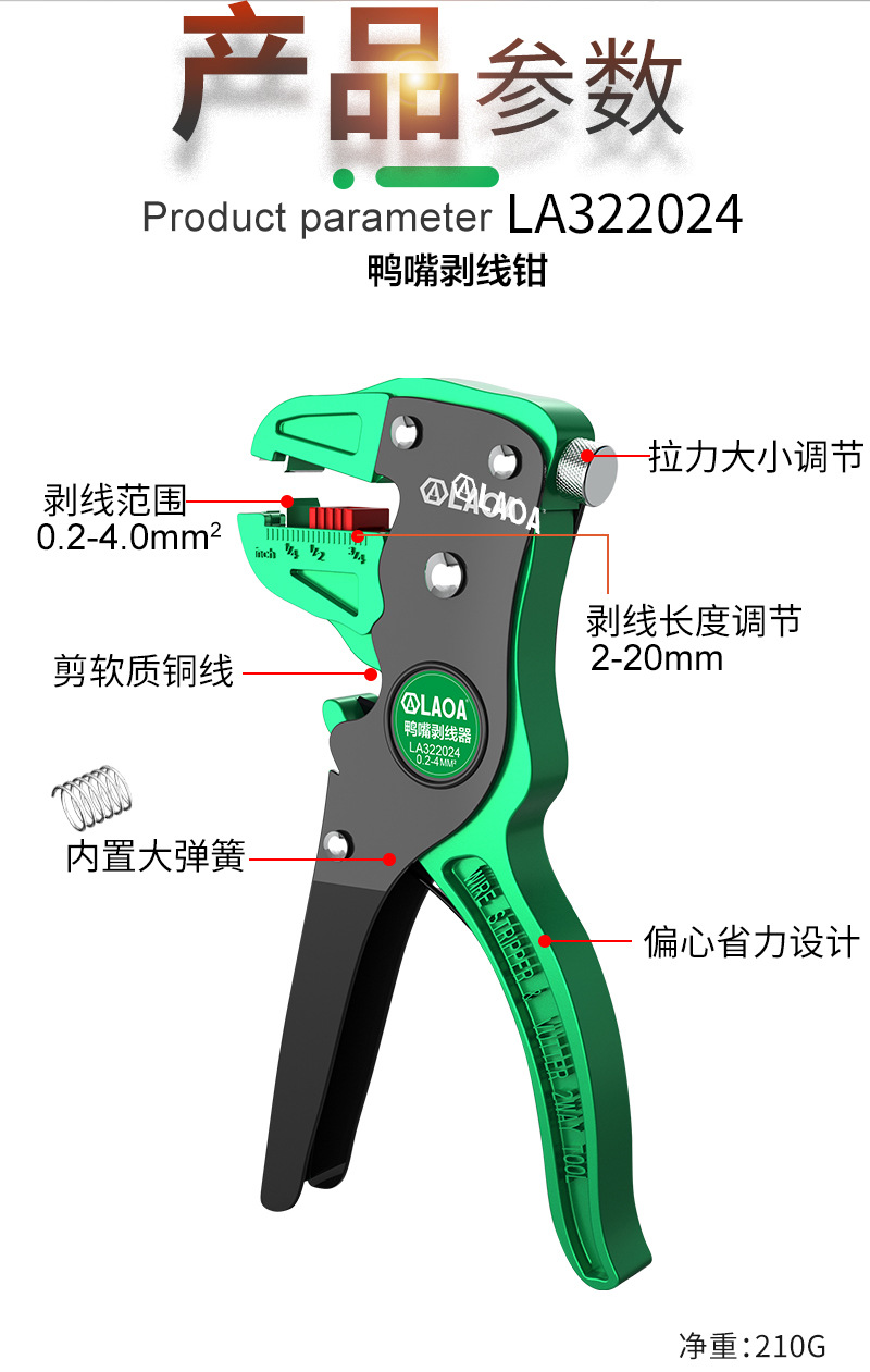 La A 다기능 덕빌 와이어 스트리핑 펜치, 자동 필링 펜치, 4제곱 전기 와이어 커터, 크로스보더 독빌 와이어 스트리핑 펜치