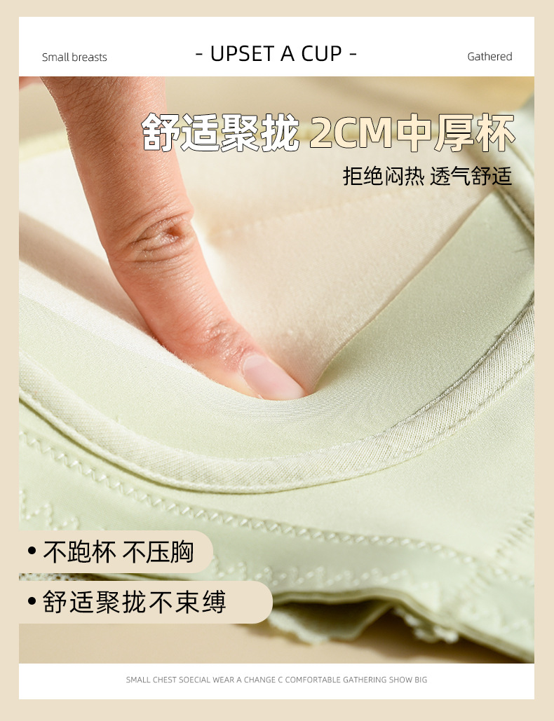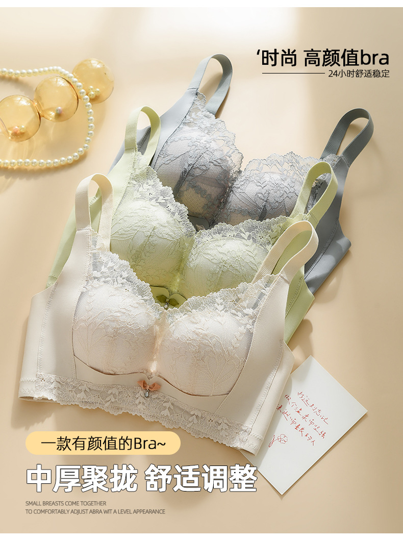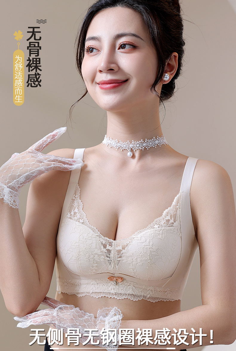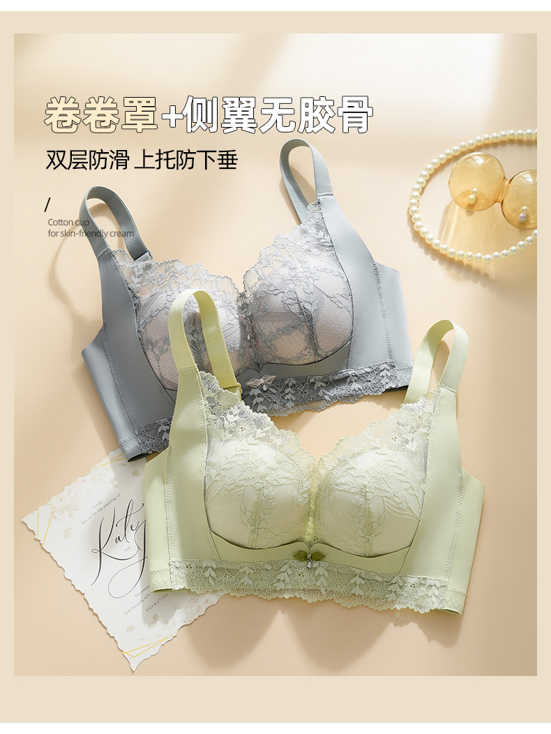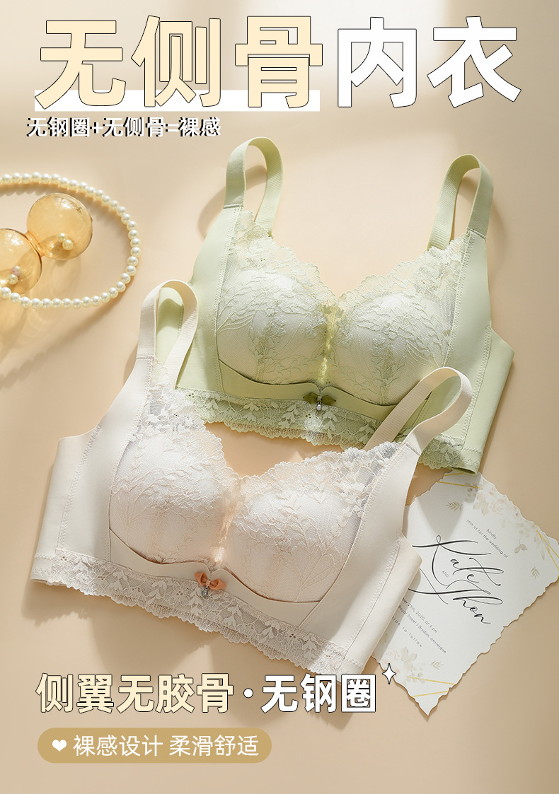 작은 가슴을 가진 여성을 위한 비자성 및 측면 뼈 없는 편안하고 통기성이 뛰어난 속옷, 푸쉬업 및 보조 가슴 수축, 와이어 프리 브라, 패셔너블한 레이스 브라