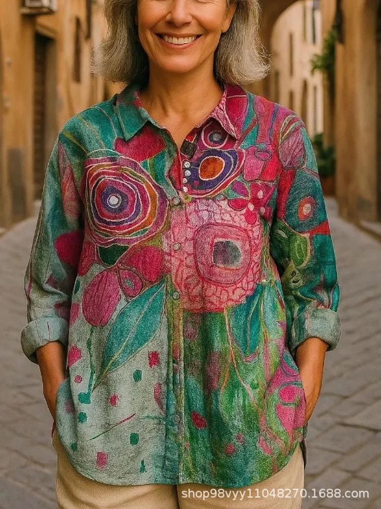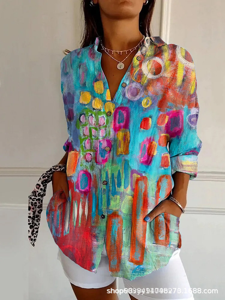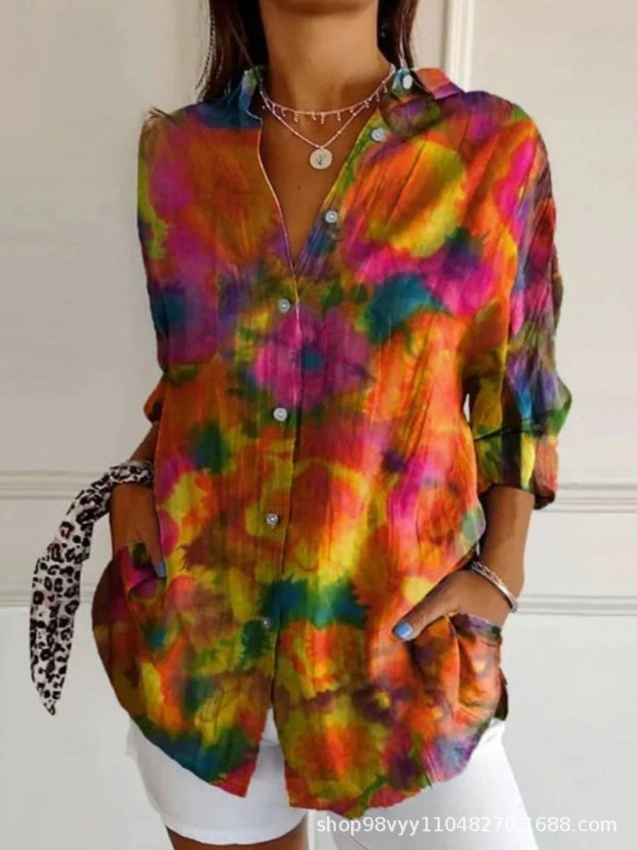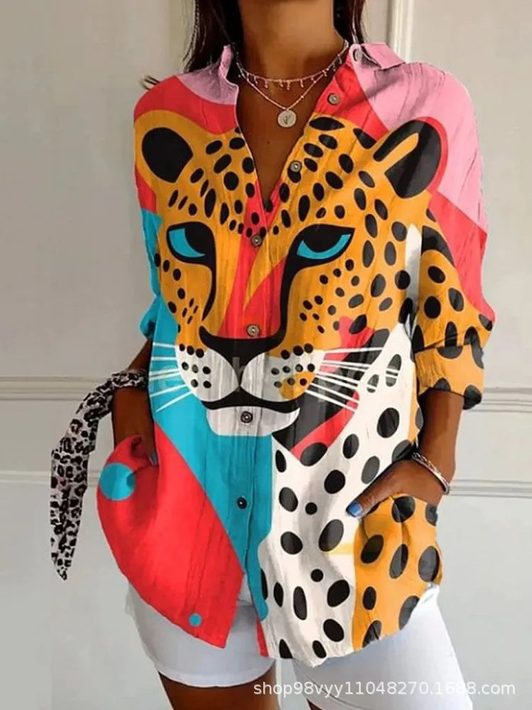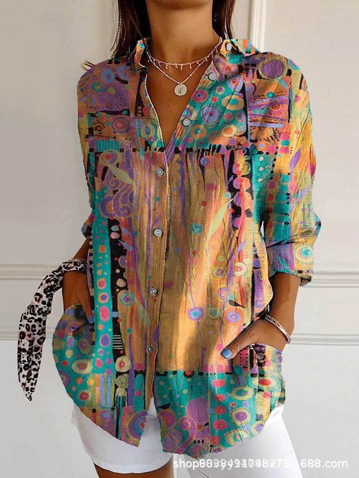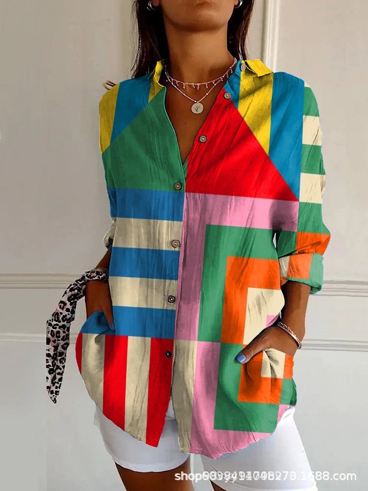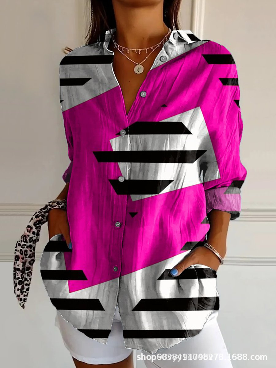 2025 새로운 아마존 스트라이프 긴팔 셔츠 여성 레인보우 카디건 대비 컬러 코트 라펠 유럽과 미국의 국경 간 대외 무역