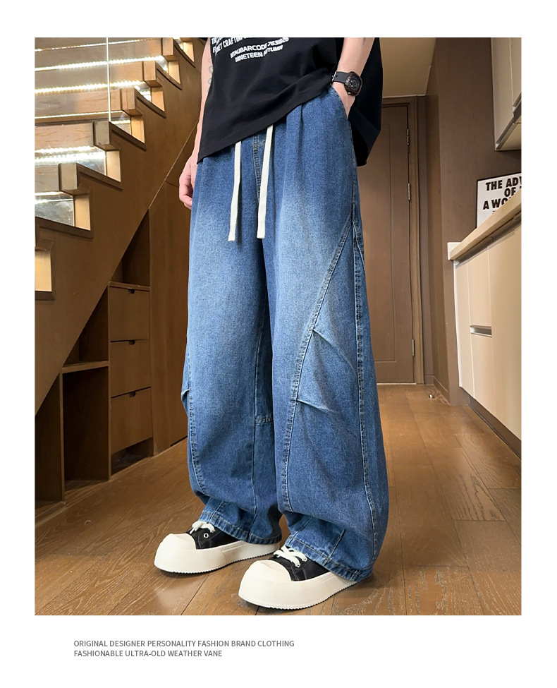 WASSUPNEST 청바지 남성 여름 신작 얇은 아메리칸 캐주얼 바지 와이드 레그 청소년 여름 세이버 바지스토어 가기