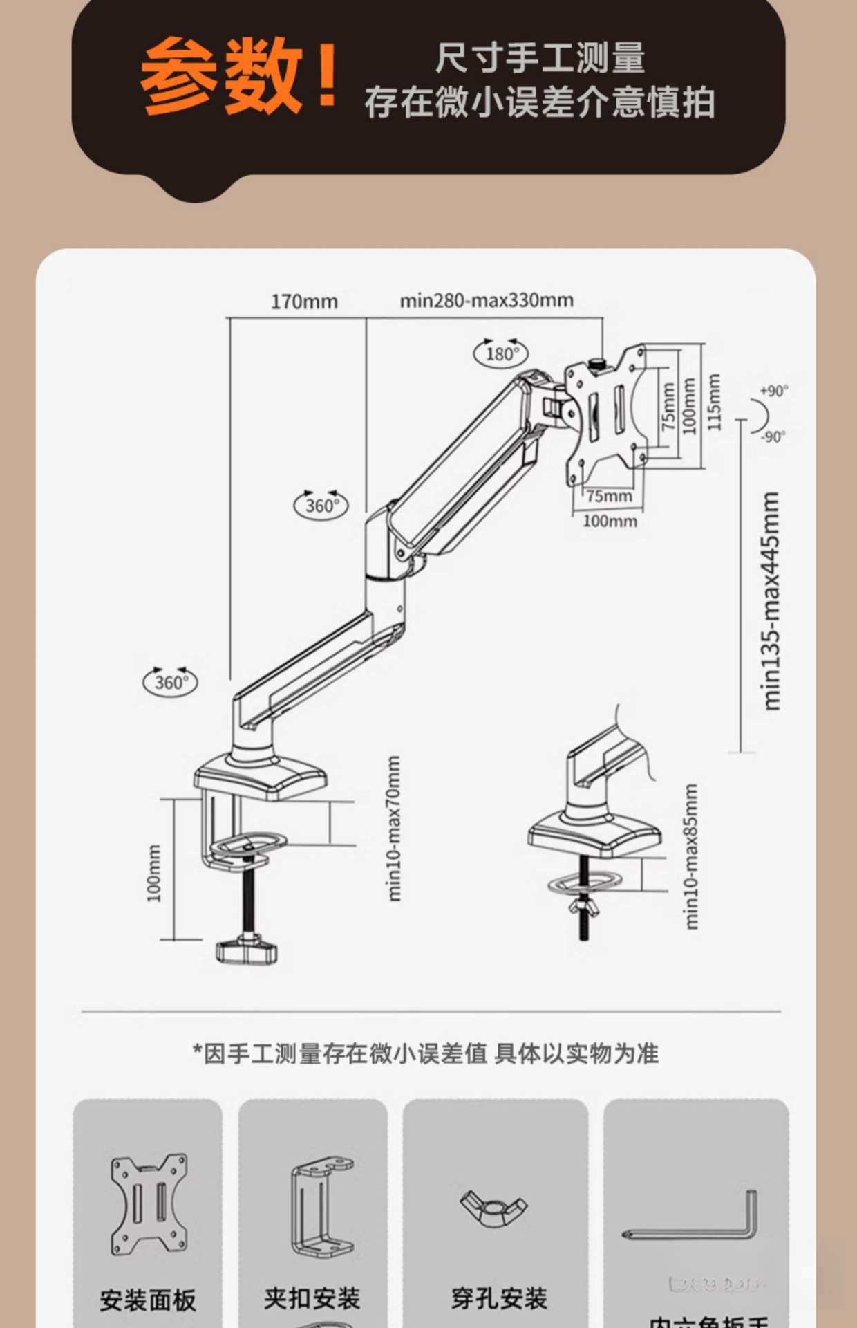 • 15KG 대용량 - 대형 스크린 모니터 전용, 안정적이고 큰 리프팅
