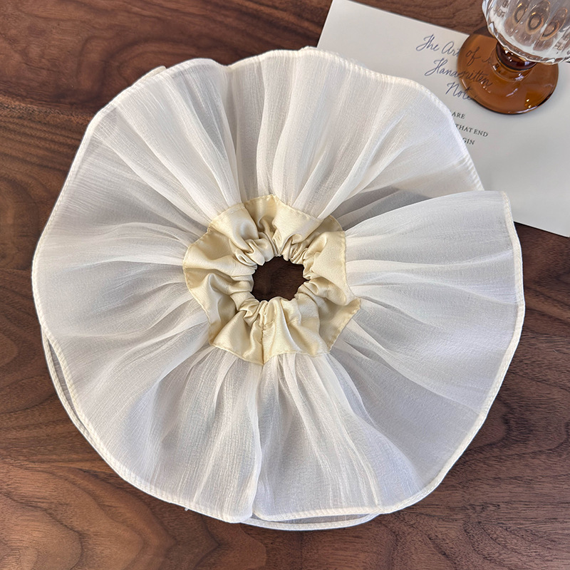 한국 스타일 오버사이즈 주름 이중 레이어 머리끈, 고급 흑백 머리띠, 다용도 헤어 액세서리, 심플한 머리끈