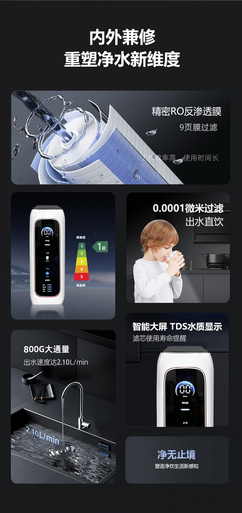 새로운 대유량 600G800G1000G 역삼투 순수 기계 이중 물 기계 수소가 풍부하고 스트론튬이 풍부한 미네랄 워터 기계스토어 가기