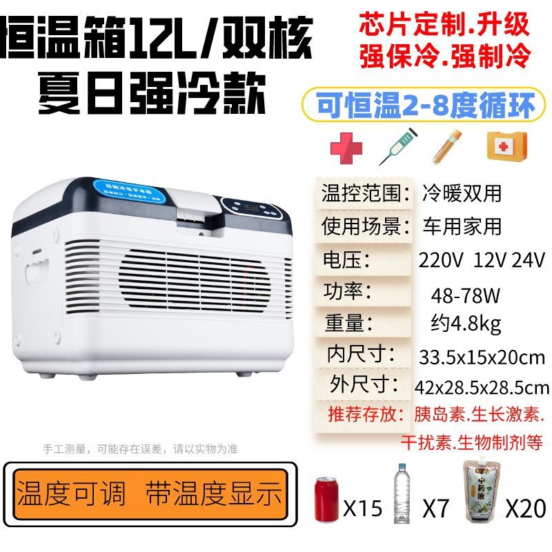 • [온도조절기 12L 듀얼코어] 업그레이드된 의약품 칩/온도조절기 2-8 ° 성장호르몬 보관