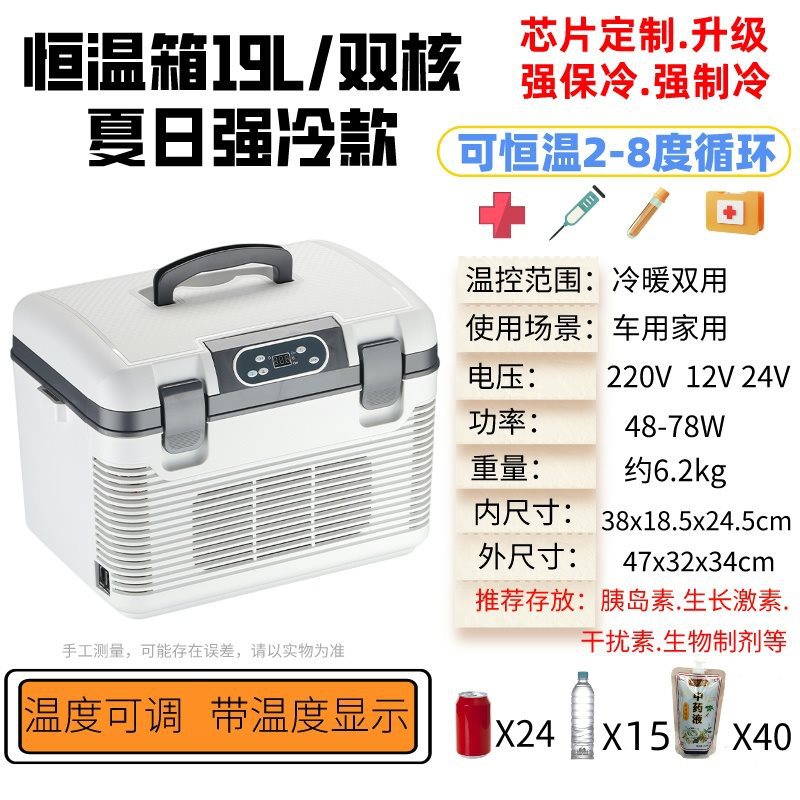 • [온도조절기 19L 듀얼코어] 업그레이드된 의약품 칩/온도조절기 2-8 ° 생물학적 제제 보관