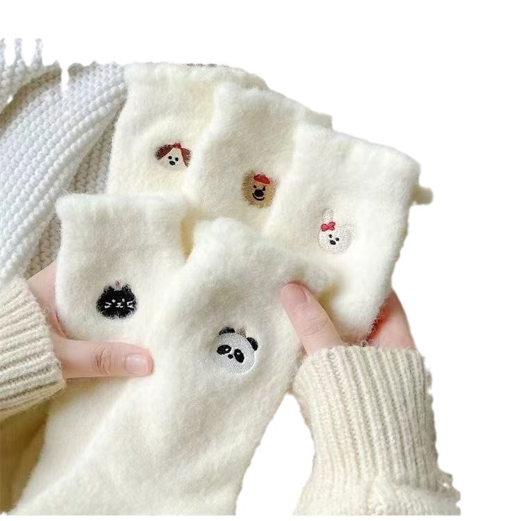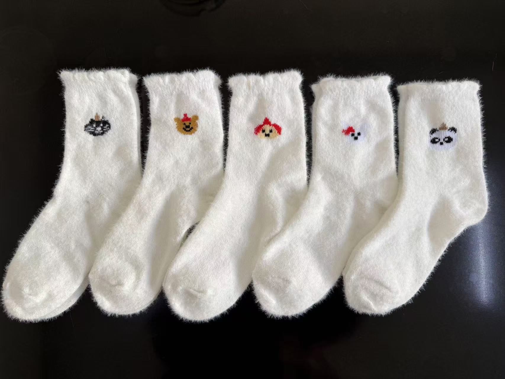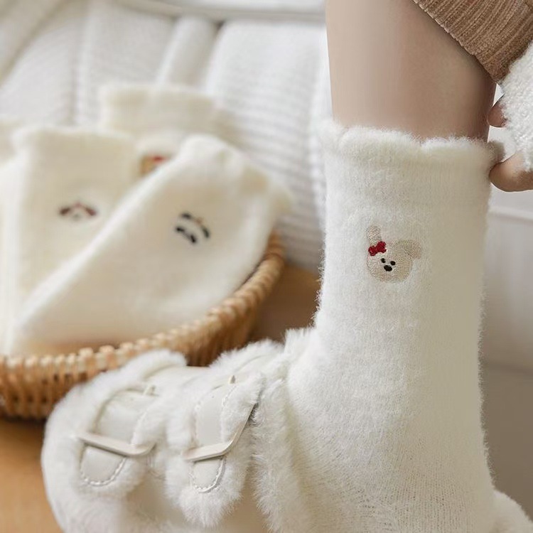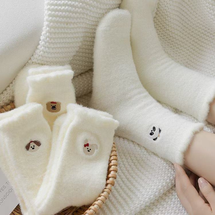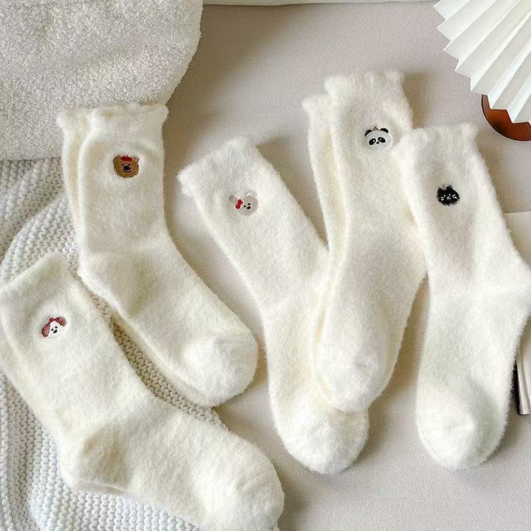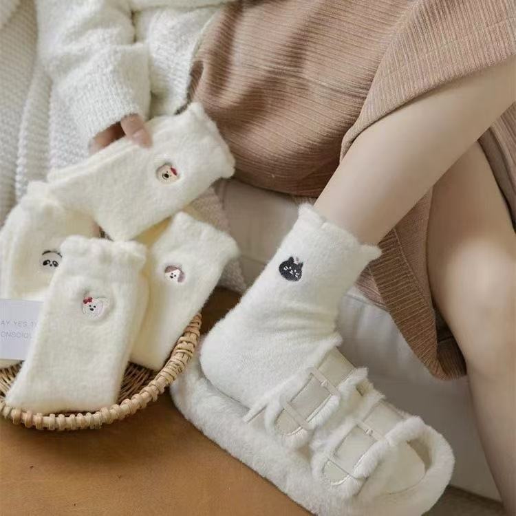 가을, 겨울 벨벳 두꺼운 따뜻한 중간 튜브 양말 만화 귀여운 겨울 흰색 플러시 두꺼운 양말 여성 수면 양말 도매