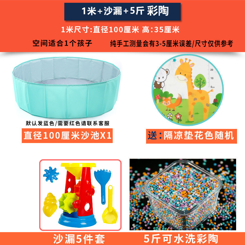 • 1.2m 블루 + 24 장난감 + 10kg 모조 도자기 모래 선샤인 비치 블루 라운드