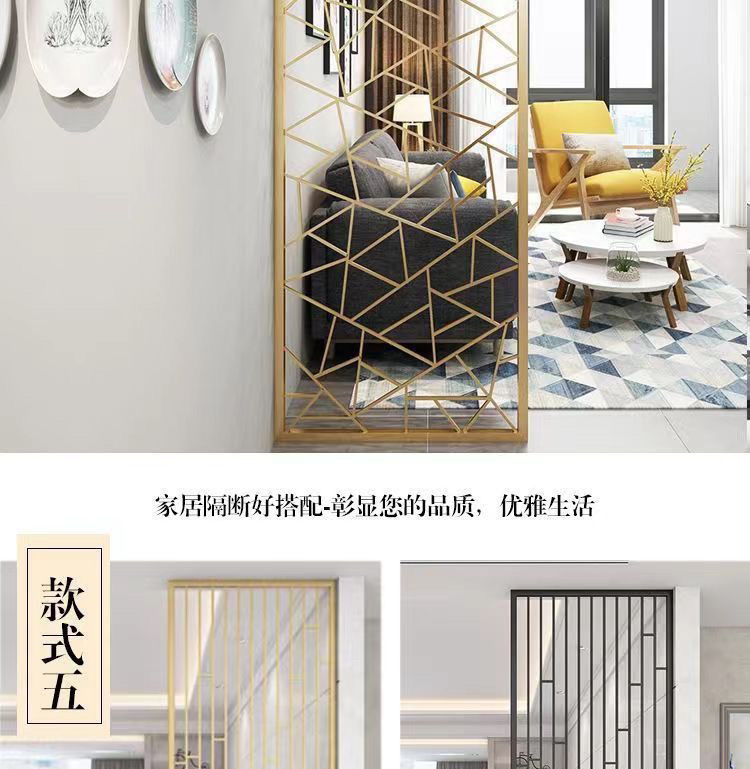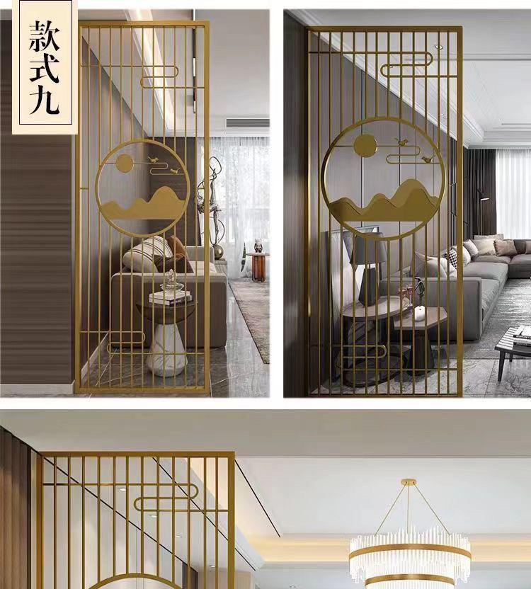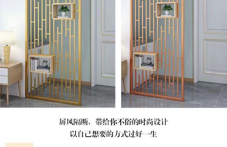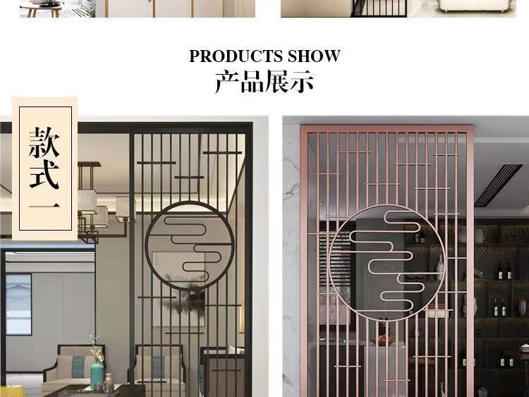 가벼운 고급 스테인레스 스틸 스크린 중국 스타일의 거실 파티션 입구 단순한 격자 현대적인 중공 차단 입구 장식스토어 가기